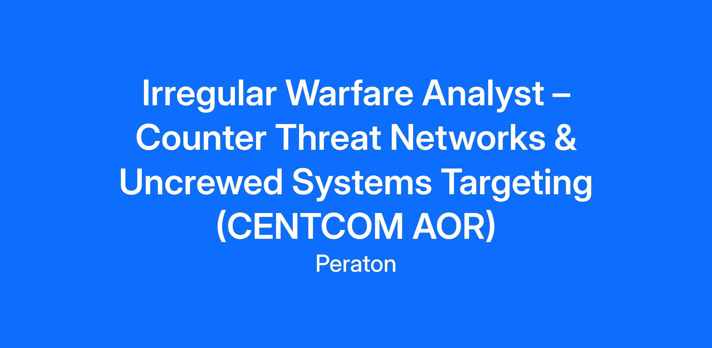 Our Peraton team is seeking an Irregular Warfare Analyst with specialized expertise in Counter Threat Networks (CTN) and Uncrewed Systems Targeting.