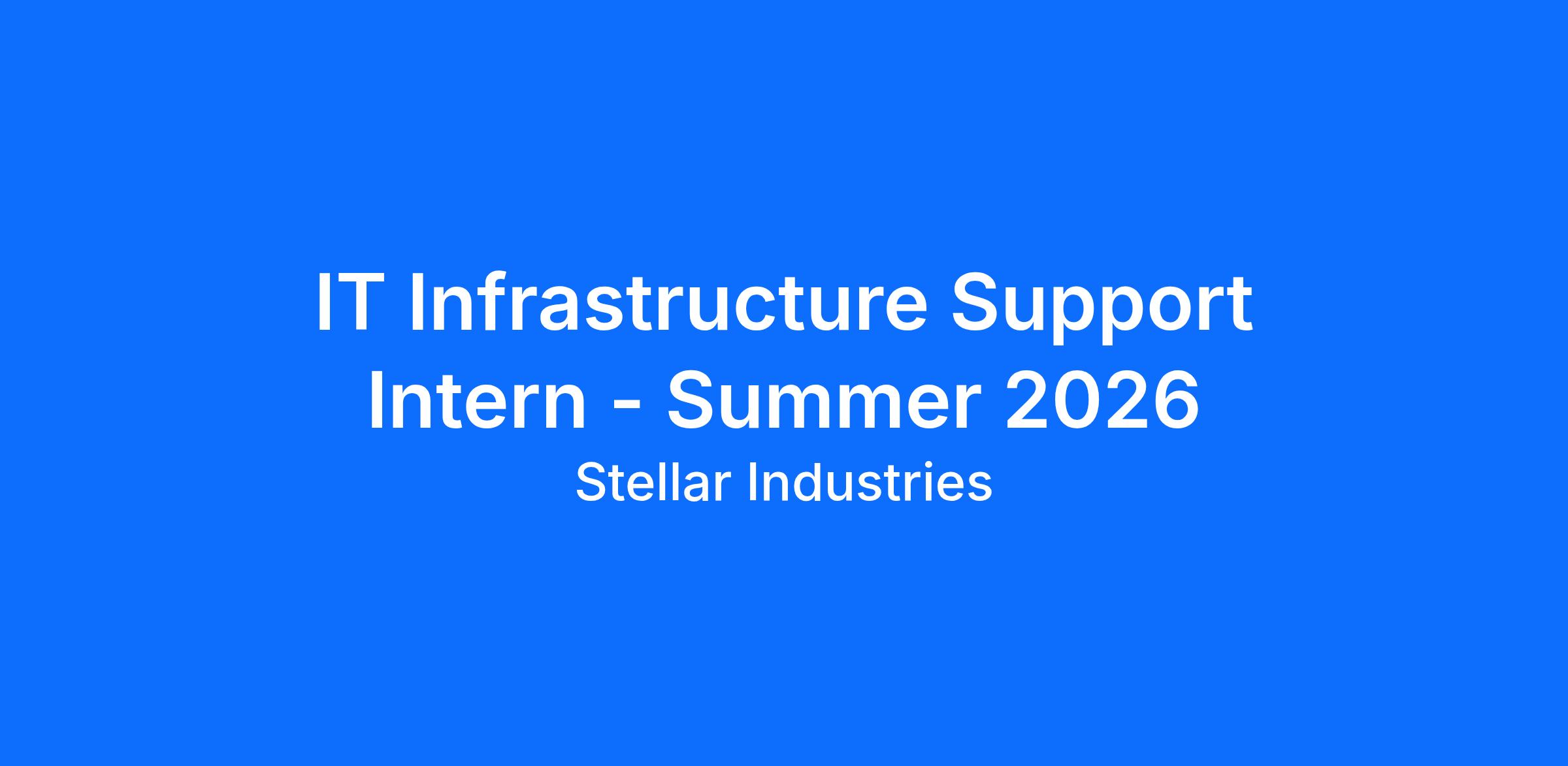 Summary: The Information Technology Infrastructure support Intern works closely with Information Technology Leadership and other IT employees on various Information Technology tasks and projects. The responsibilities of the Information Technology Intern vary based on assignments and department needs. At Stellar Industries, Inc. we strive to provide interns with an understanding of information technology functions in a manufacturing organization as well as opportunity to apply what has been learned in the classroom in a dynamic business setting.