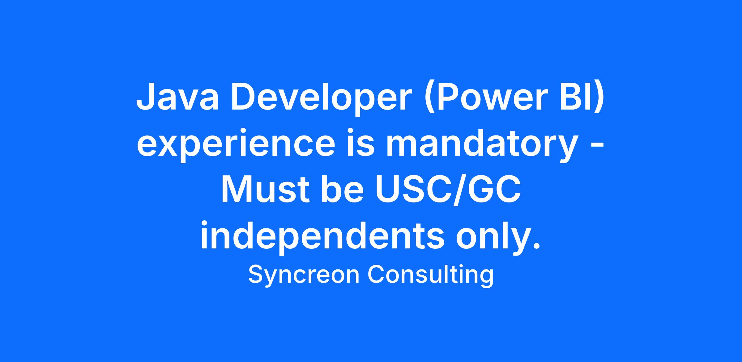 Java Developer (Power BI) experience is mandatory - Must be USC/GC independents only.