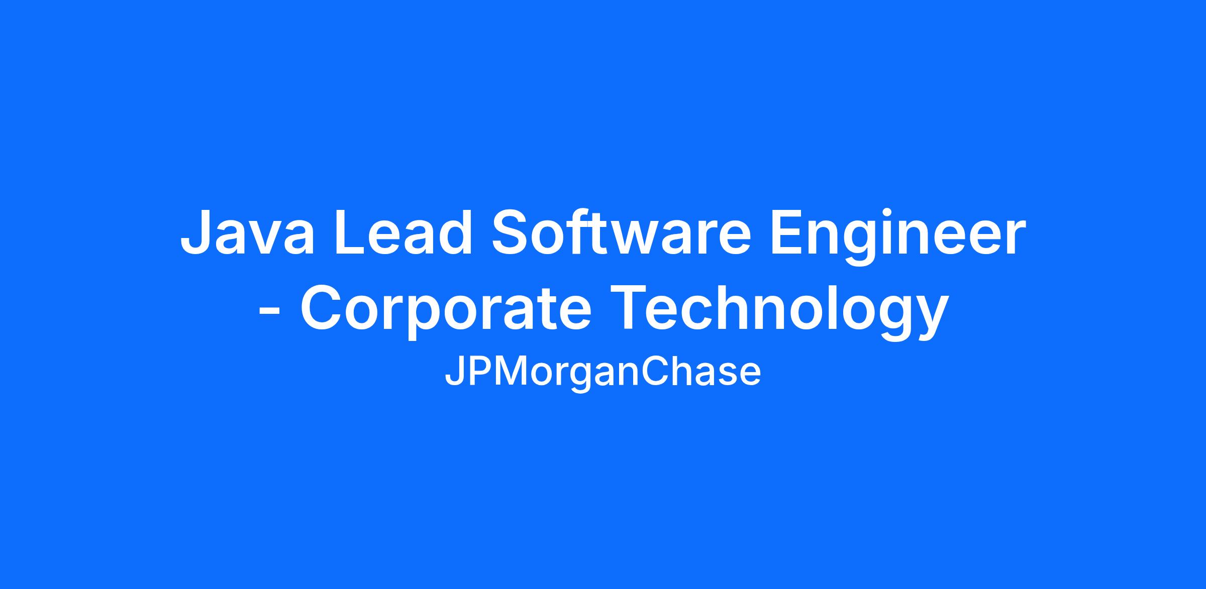 Java Lead Software Engineer - Corporate Technology