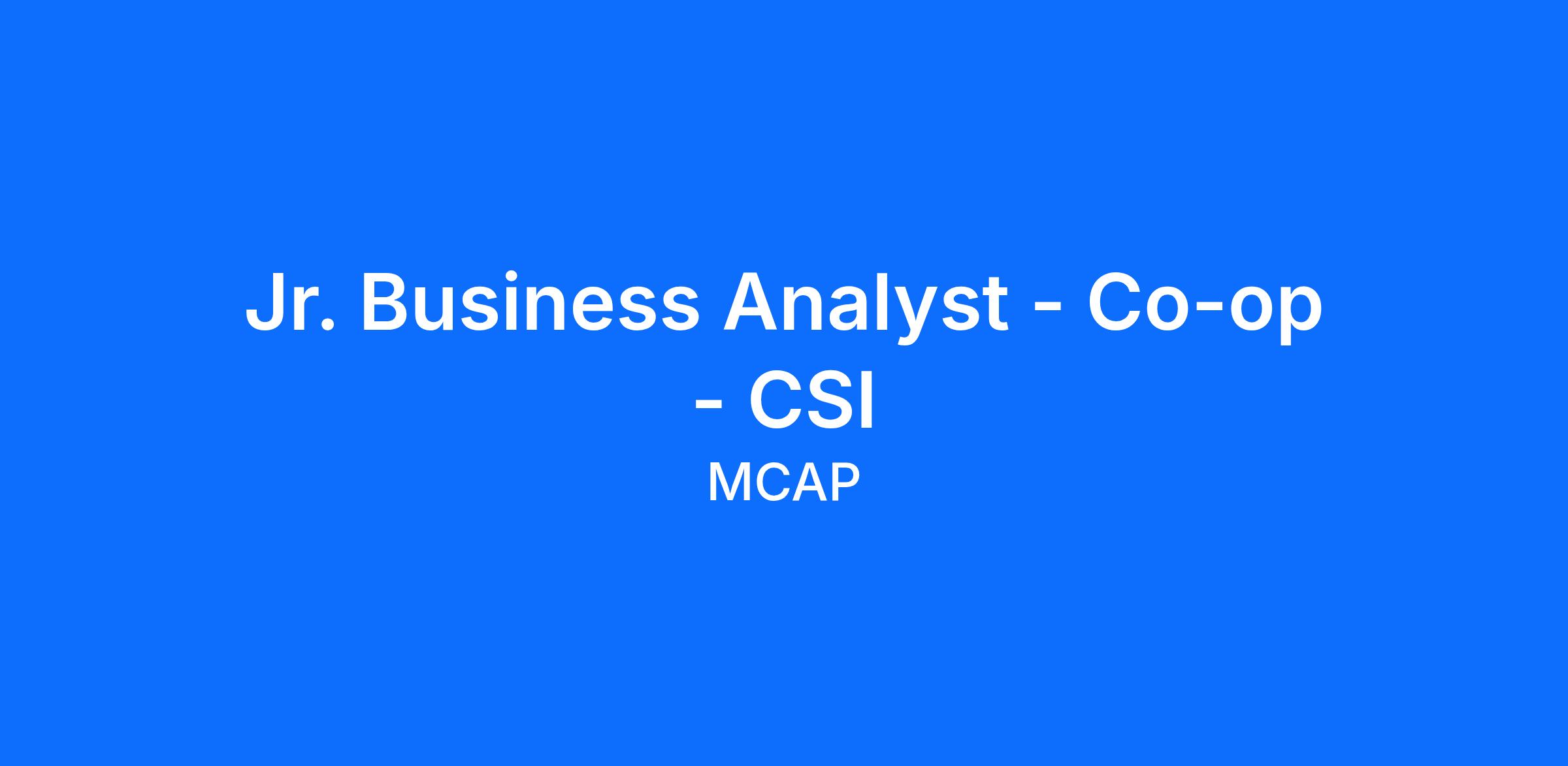 Jr. Business Analyst - Co-op - CSI