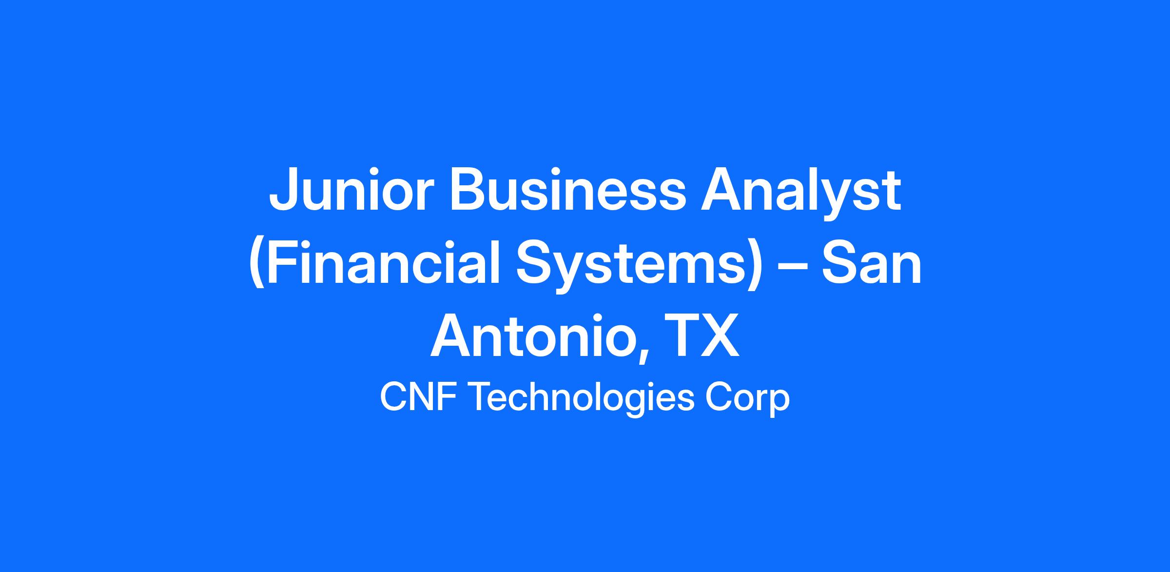 Junior Business Analyst (Financial Systems) – San Antonio, TX