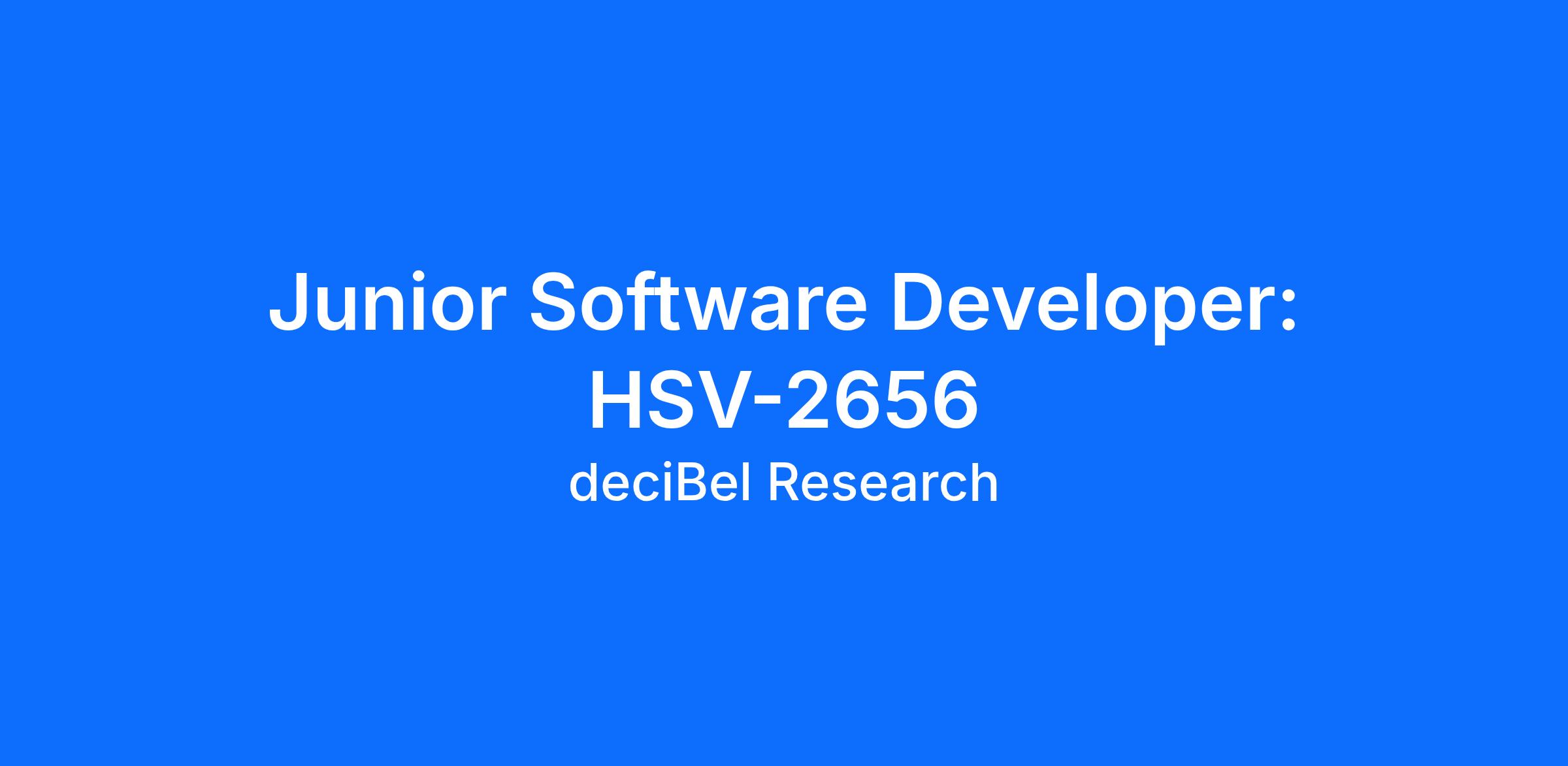 deciBel Research has an immediate opening for a Junior Software Developer in Huntsville, AL.