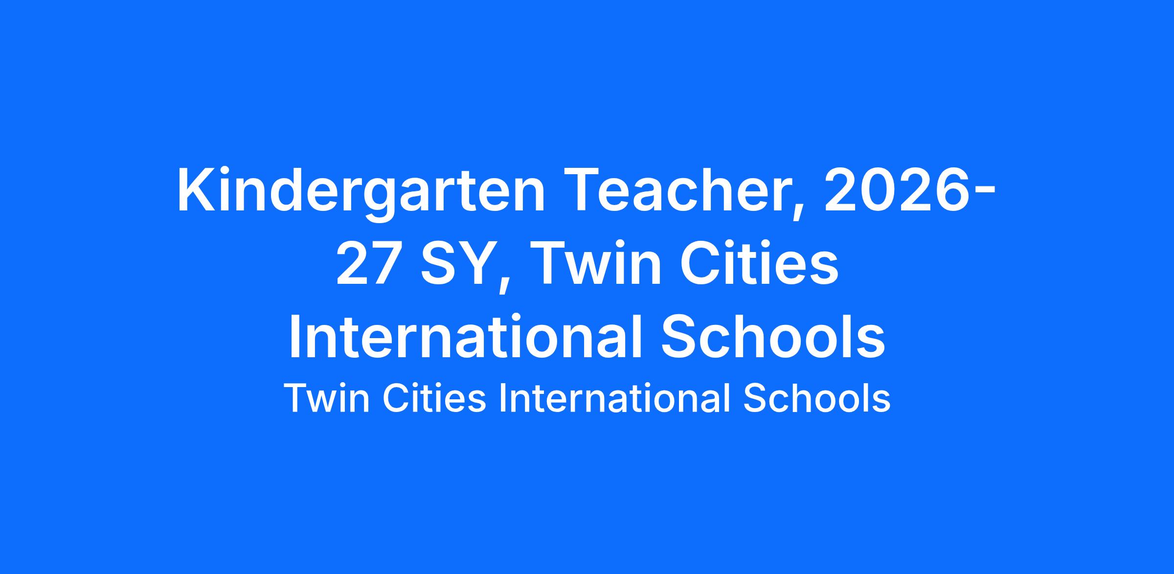 Twin Cities International Schools are currently accepting applications for a Kindergarten teaching position for the upcoming 2026-27 school year. Position start date of August 16th, 2026. Applicants must possess a valid Minnesota teaching license prior to start date. We are a public charter school located in the North Loop of Minneapolis with a student enrollment of approximately 1,000 students (K-8.)