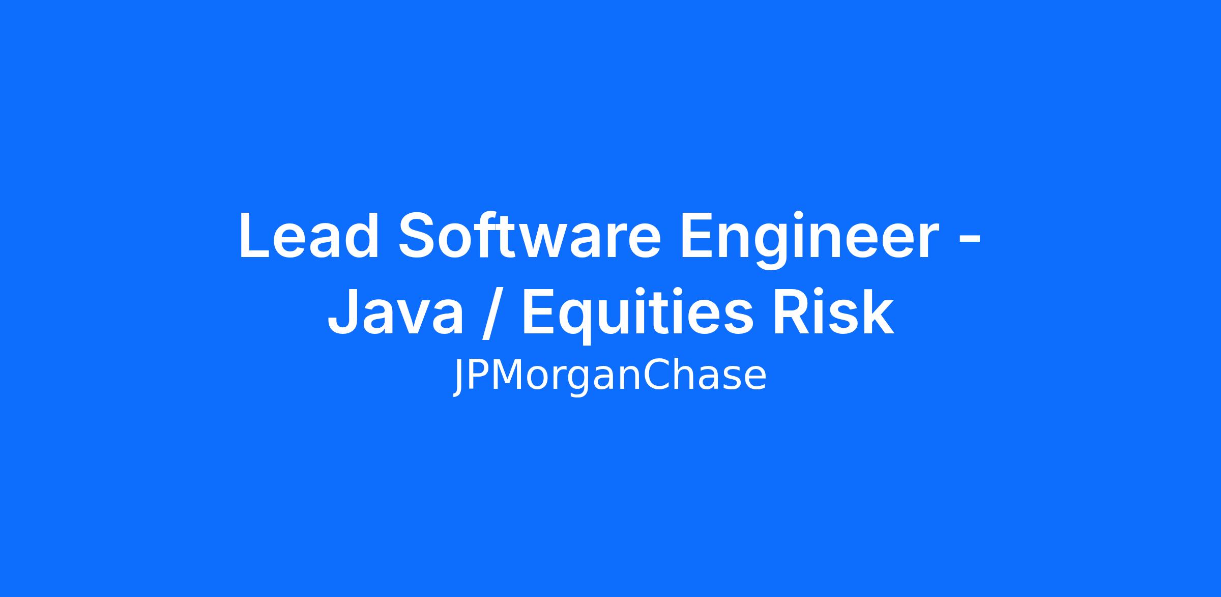 DescriptionAs a Lead Software Engineer at JPMorganChase within the Commercial and Investment Bank - Global Equity Derivatives Risk Management team, you are an integral part of an agile team that works to enhance, build, and deliver trusted market-leading technology products in a secure, stable, and scalable way. Drive the delivery of a best in class platform for real-time derivatives pricing, risk management, and streaming position aggregation for a range of complex financial products.
