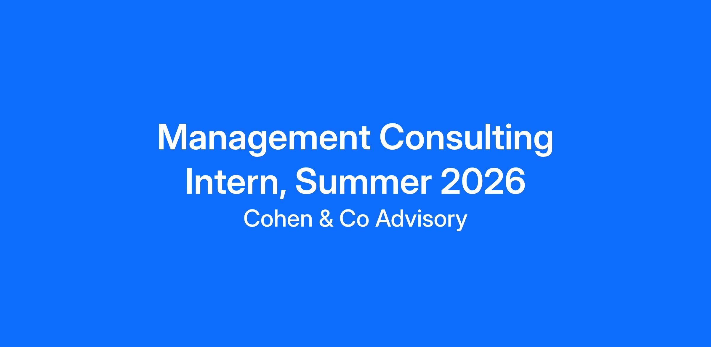 Management Consulting Intern, Summer 2026