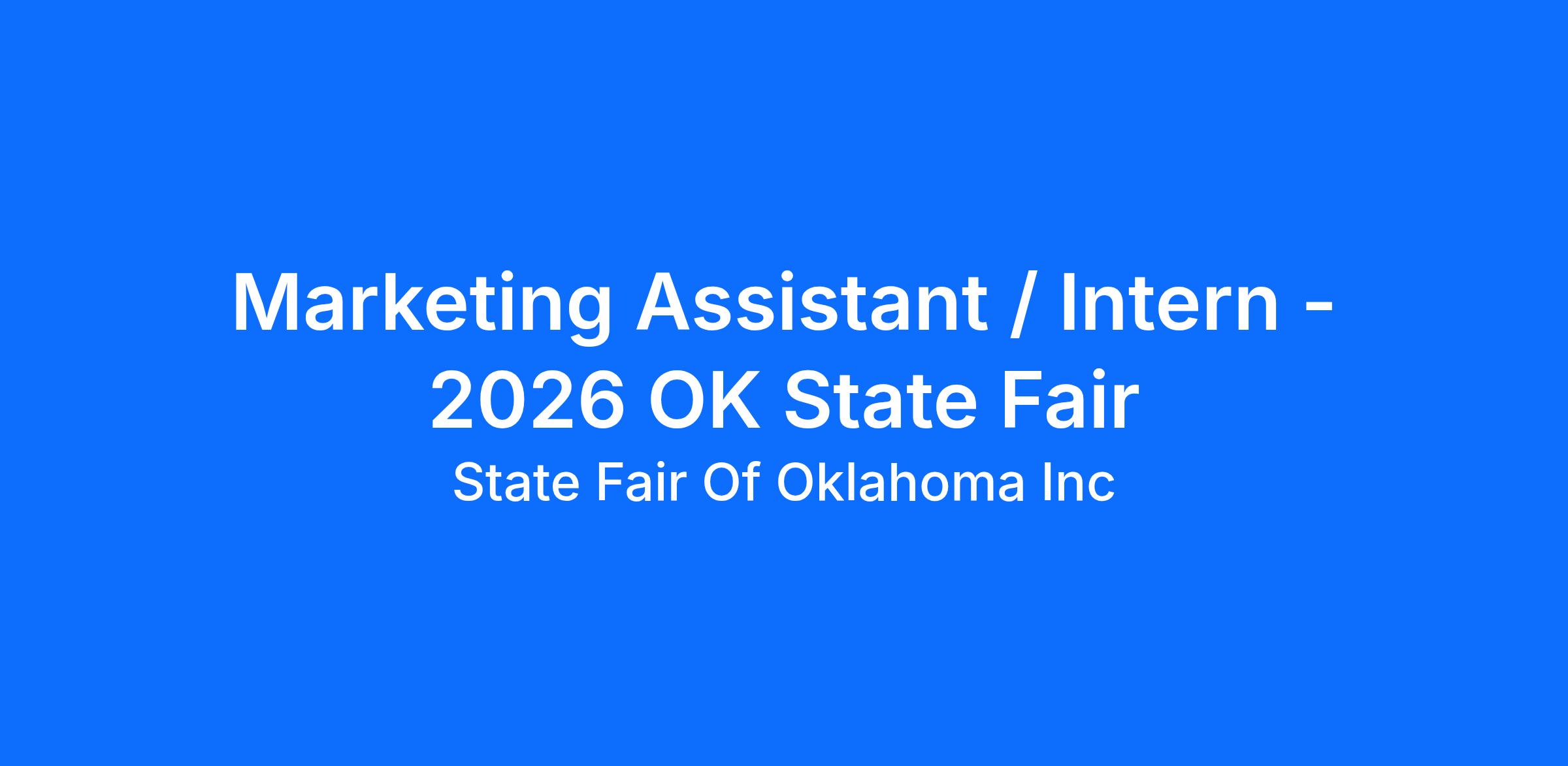 This position is a seasonal role with an anticipated start date, end date and number of hours per week/month as outlined below. Employment is tied to seasonal business demands and is not guaranteed beyond the seasonal period. While there may be opportunities for other or intermittent hours outside of the stated period, any such hours are contingent upon business needs, workload, and operational requirements and do not change the seasonal nature of the position. This position does not carry a guarantee of minimum hours or continued employment beyond the seasonal term. This will be a temporary, part-time and hourly position for employment related to the 2026 Oklahoma State Fair. No other benefits, except those required by law, apply. Applications will continue to be accepted until position has been filled.