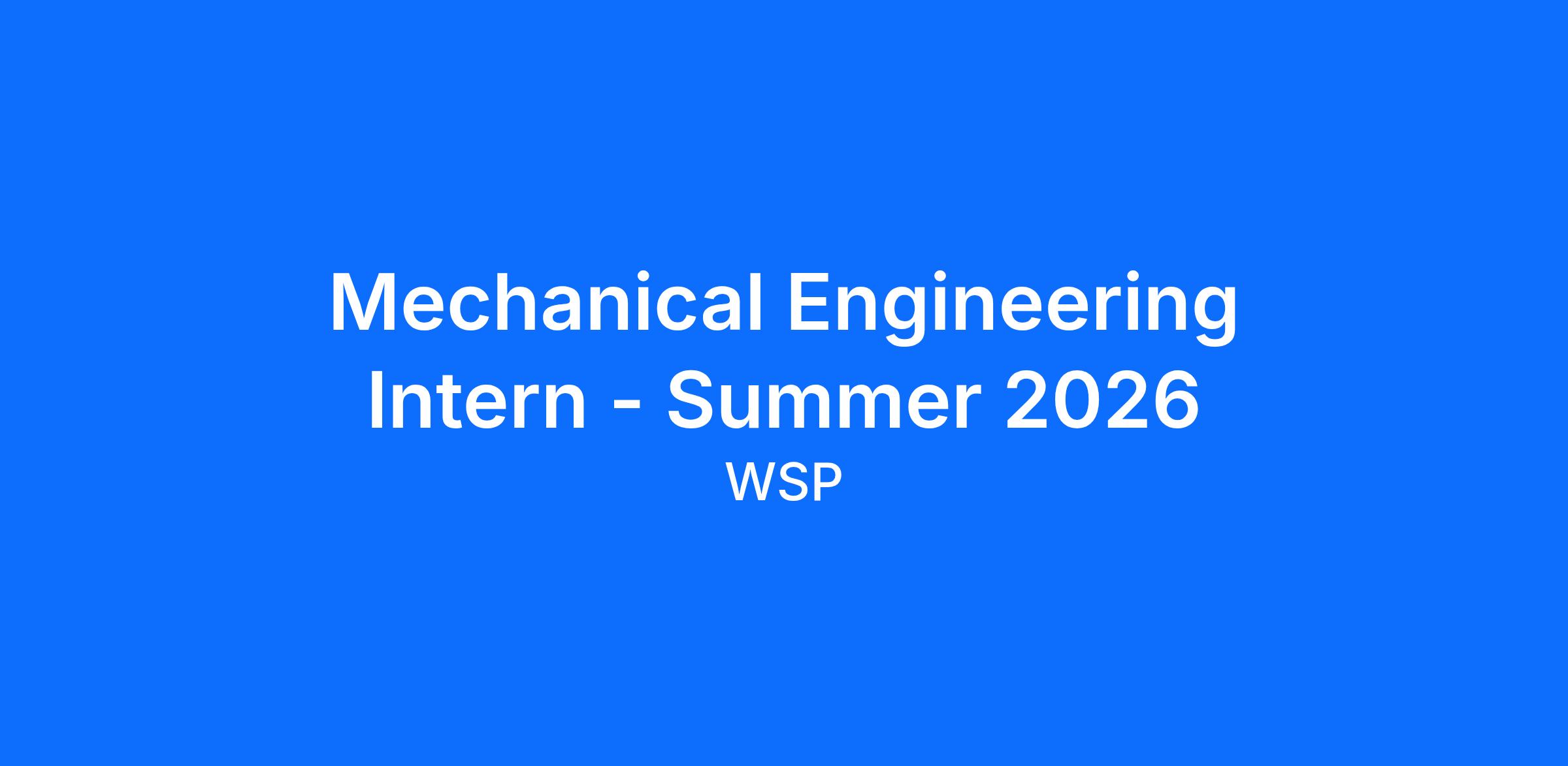 This internship will be part of the WSP Summer Internship Program. As a summer intern, you have the opportunity to participate in our 12-week program scheduled to start on May 18th, 2026. The individual start date of the internship may be flexible.