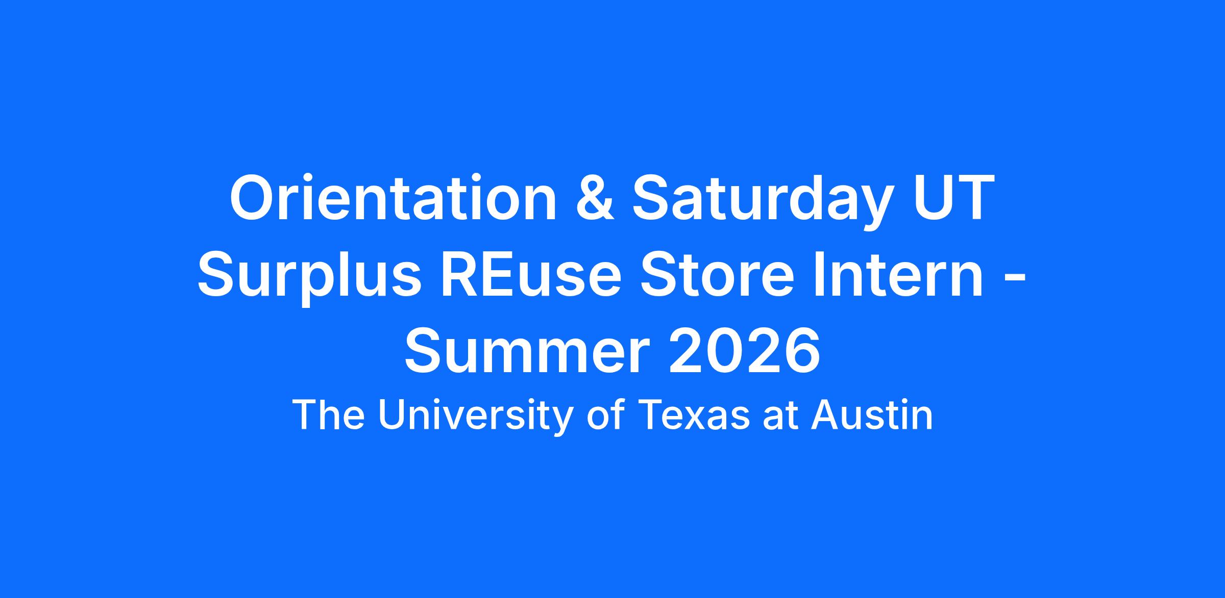 Orientation & Saturday UT Surplus REuse Store Intern - Summer 2026----