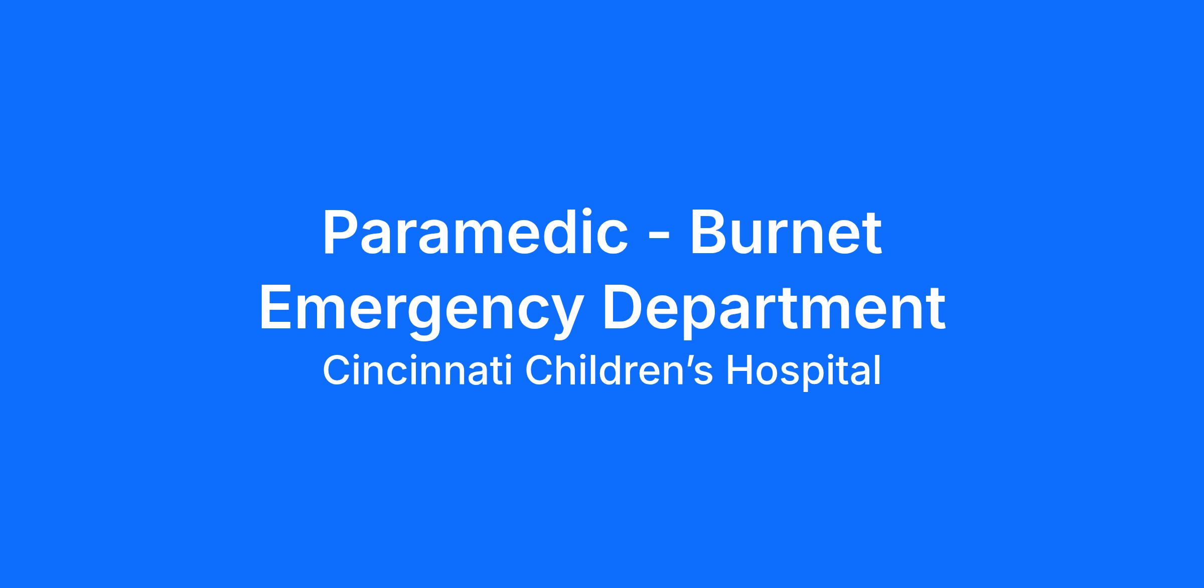 Patient Transport- Perform skills as established by CCHMC Transport Team policy and procedure and guideline and the State of Ohio Board of EMS. Accept and comply with laws, regulations, rules, policies, and procedures. Operate Emergency Vehicles within applicable laws. Independently assess department needs and respond within Paramedic scope of practice according to the state EMS Board Division of EMS/Ohio Department of Public Safety. The complete scope of practice can be found in Ohio Revised Code Sections 4765.39 (EMT-P) and further defined in Ohio Administrative Code Rules, 4765-17-03 (Paramedic). Maintain current driver's license and good driving records; points not to exceed 5. Maintain current national registry, Ohio and Kentucky EMS Paramedic certification. Maintain clear record of incidents in CCHMC vehicle. Turn in all fuel slips and required documentation per standard operating procedure. Demonstrate compliance with physical requirements of lifting, pushing, and carrying up to 400 lbs.