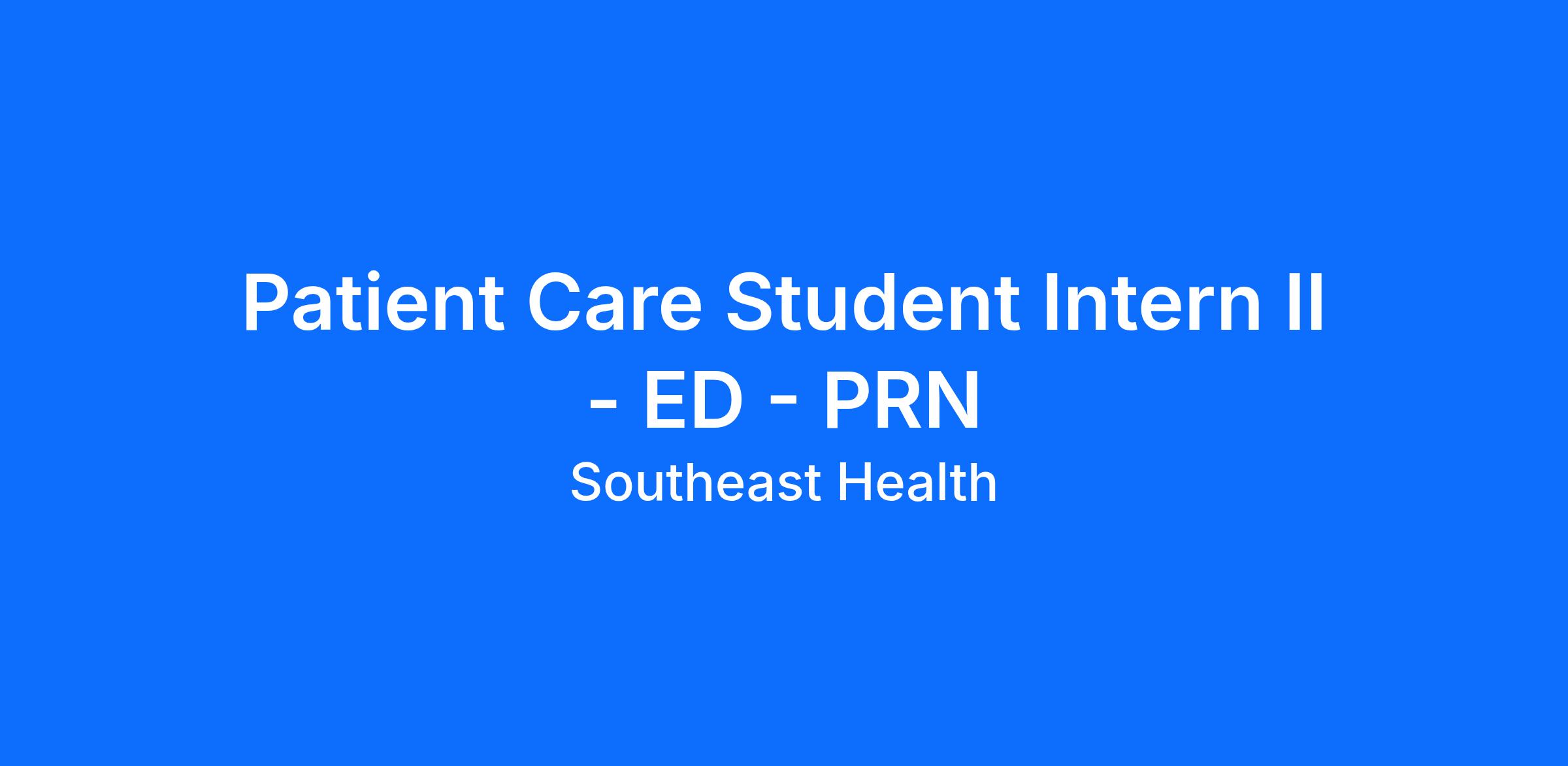 The Patient Care Student Intern II performs various patient care activities and related duties necessary to care for the personal needs and comfort of the patient as well as for the effective and efficient operation of the department; utilizes knowledge gained from participation in an associate or bachelor's degree nursing program to assist the Registered Nurse in the care of the patient.