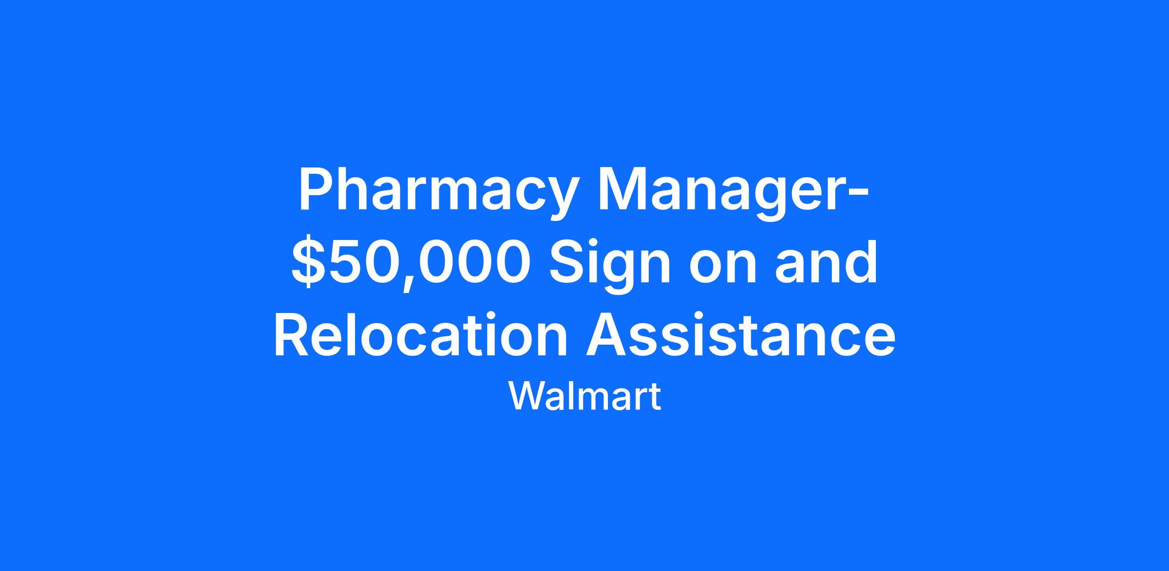 Pharmacy Manager- $50,000 Sign on and Relocation Assistance