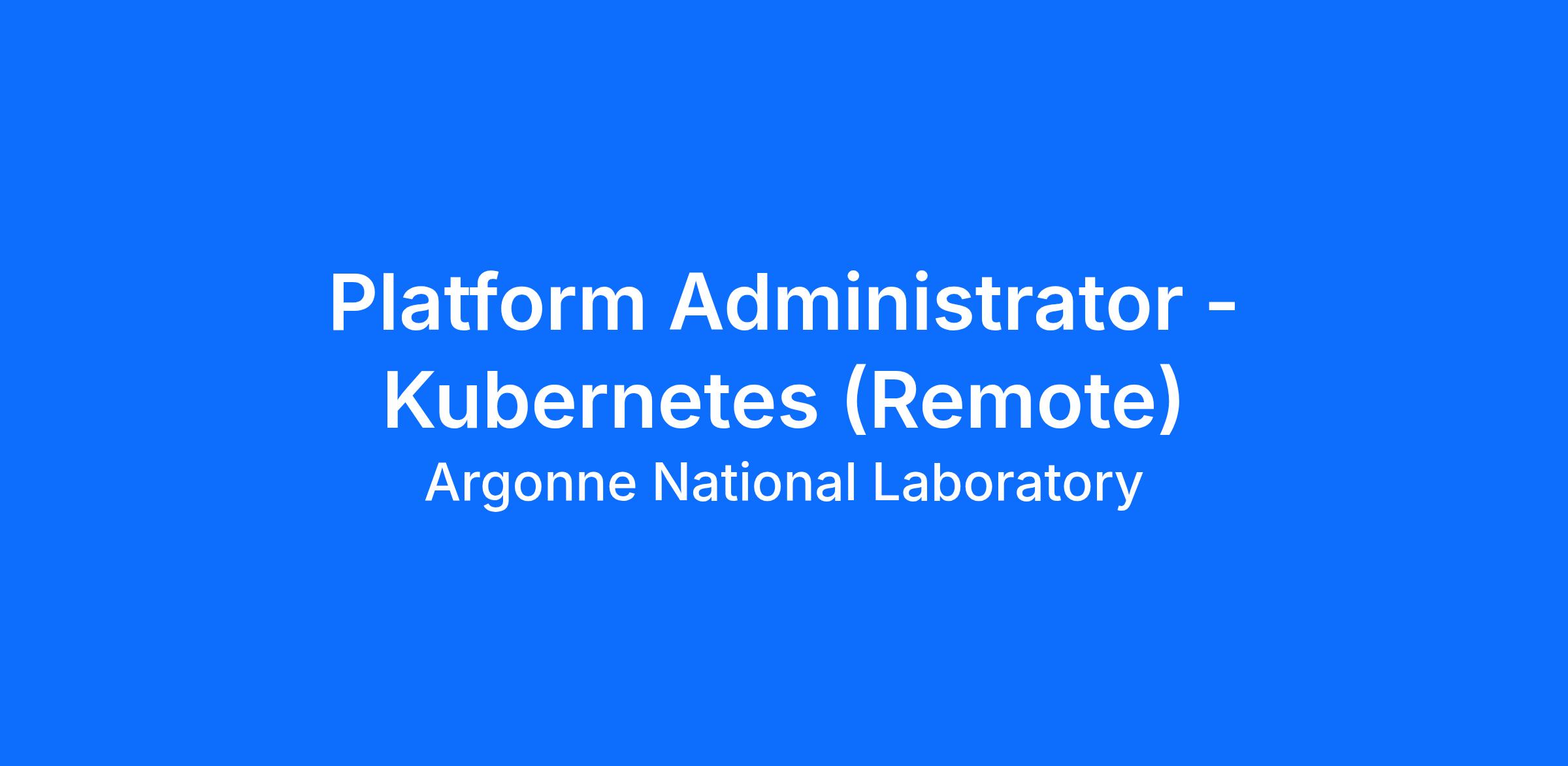 The Argonne Leadership Computing Facility at Argonne National Lab is seeking a Platform Administrator (Kubernetes) to join the Containerization, Cloud, and Confidential Computing (C4) team within its Operations group. This position will be involved in managing the day-to-day operations of a set of on-premise Kubernetes clusters and work with both internal and external users to deploy applications on these clusters.