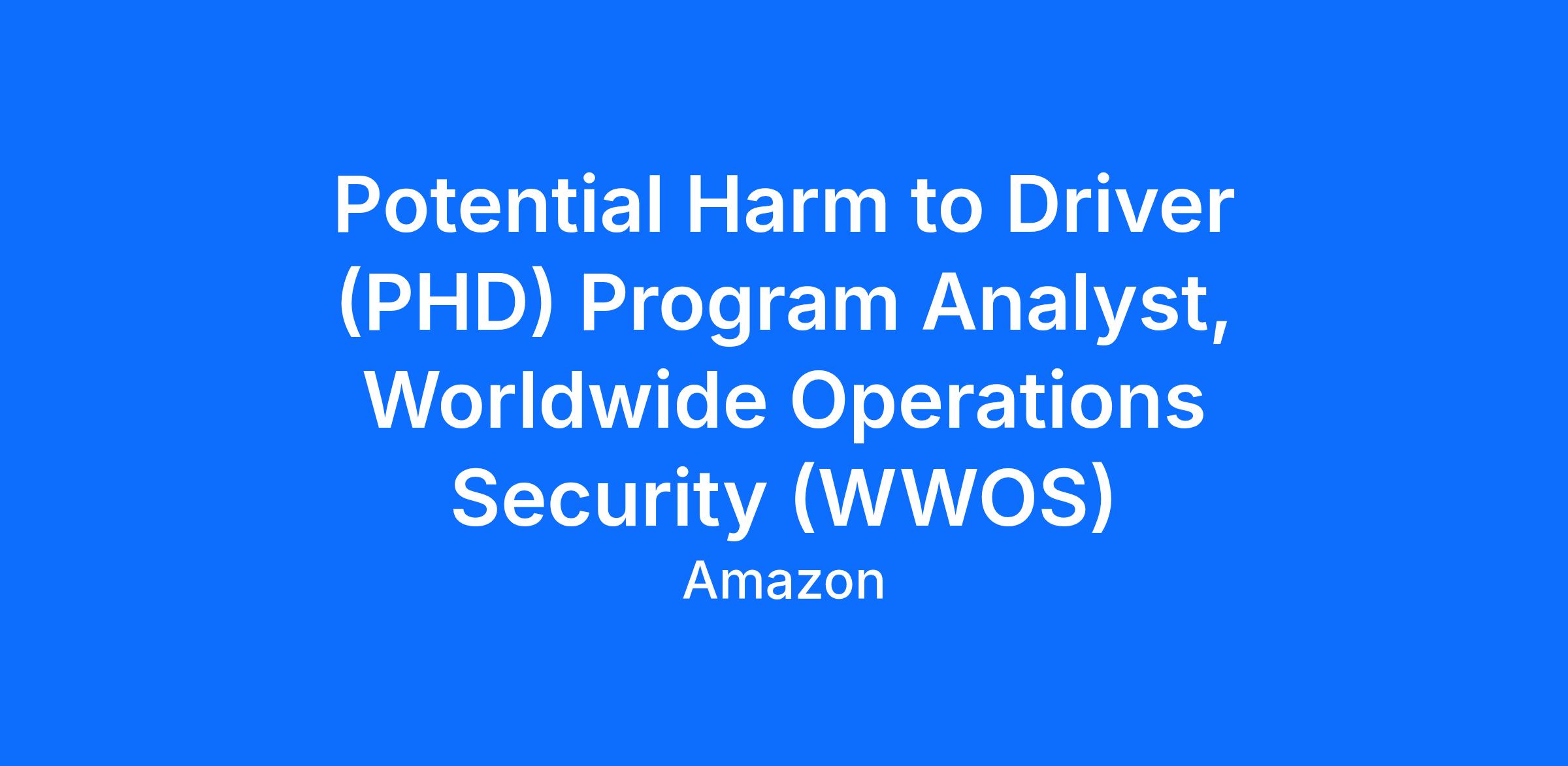 Potential Harm to Driver (PHD) Program Analyst, Worldwide Operations Security (WWOS)