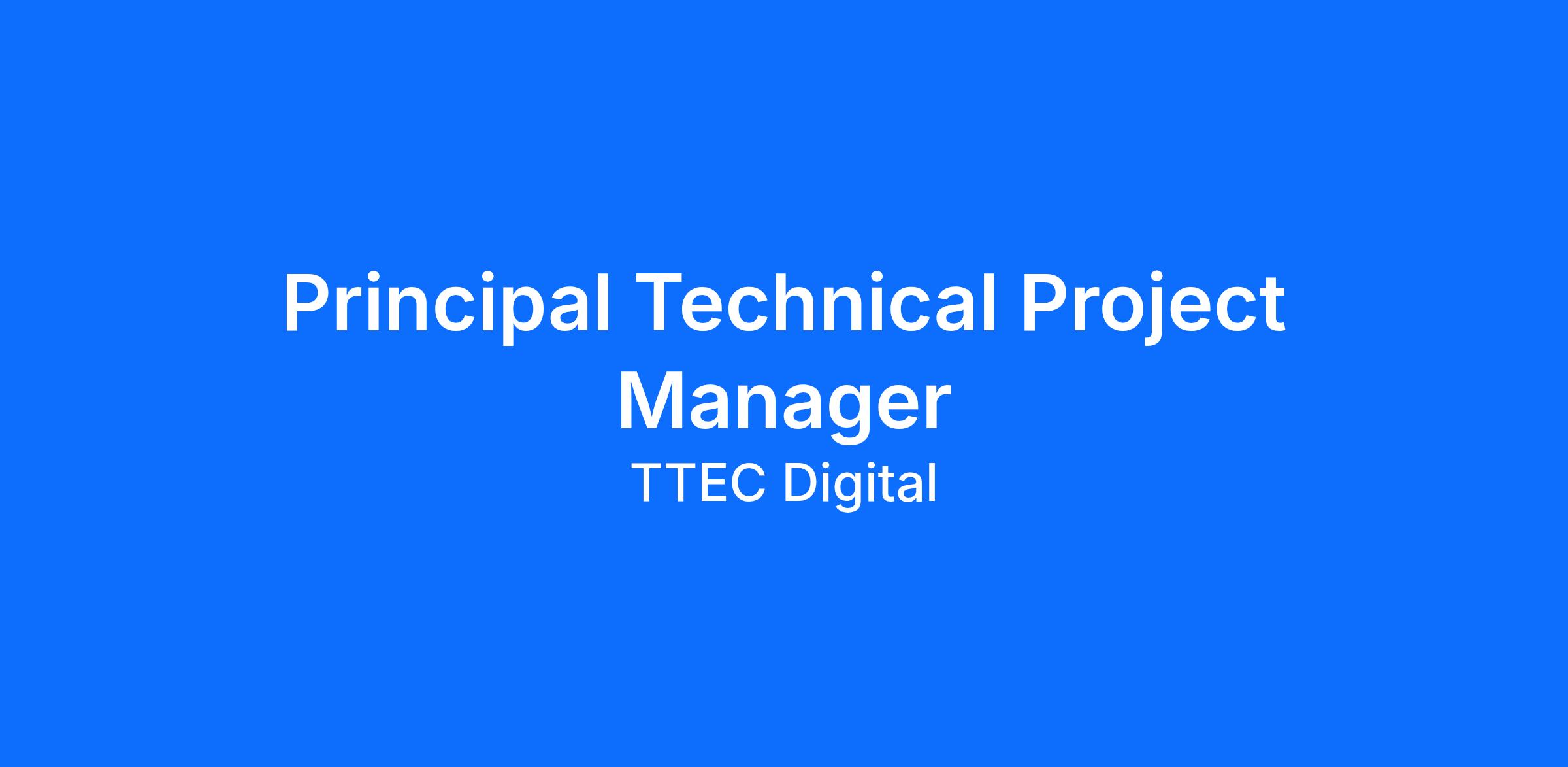 TTEC Digital is seeking a Principal Technical Project Manager to join our TTEC Digital Solutions team. This is a remote opportunity with some client site travel requirements.