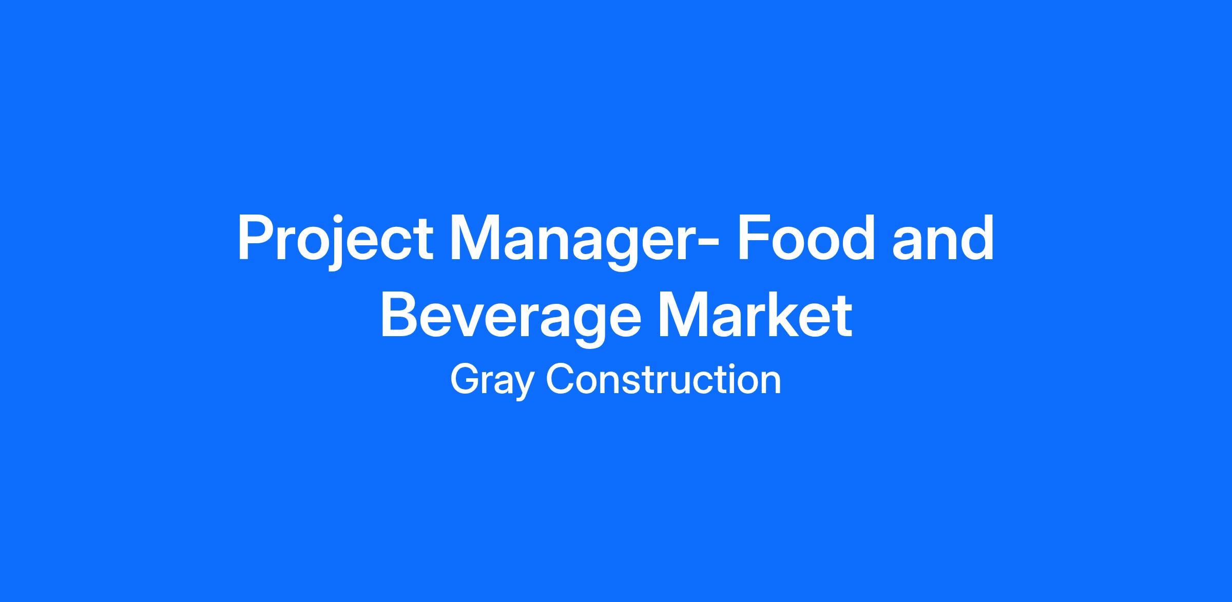 Gray Construction is looking to add a Project Manager - Food and Beverage Market to join their team in our Charlotte, NC office.
