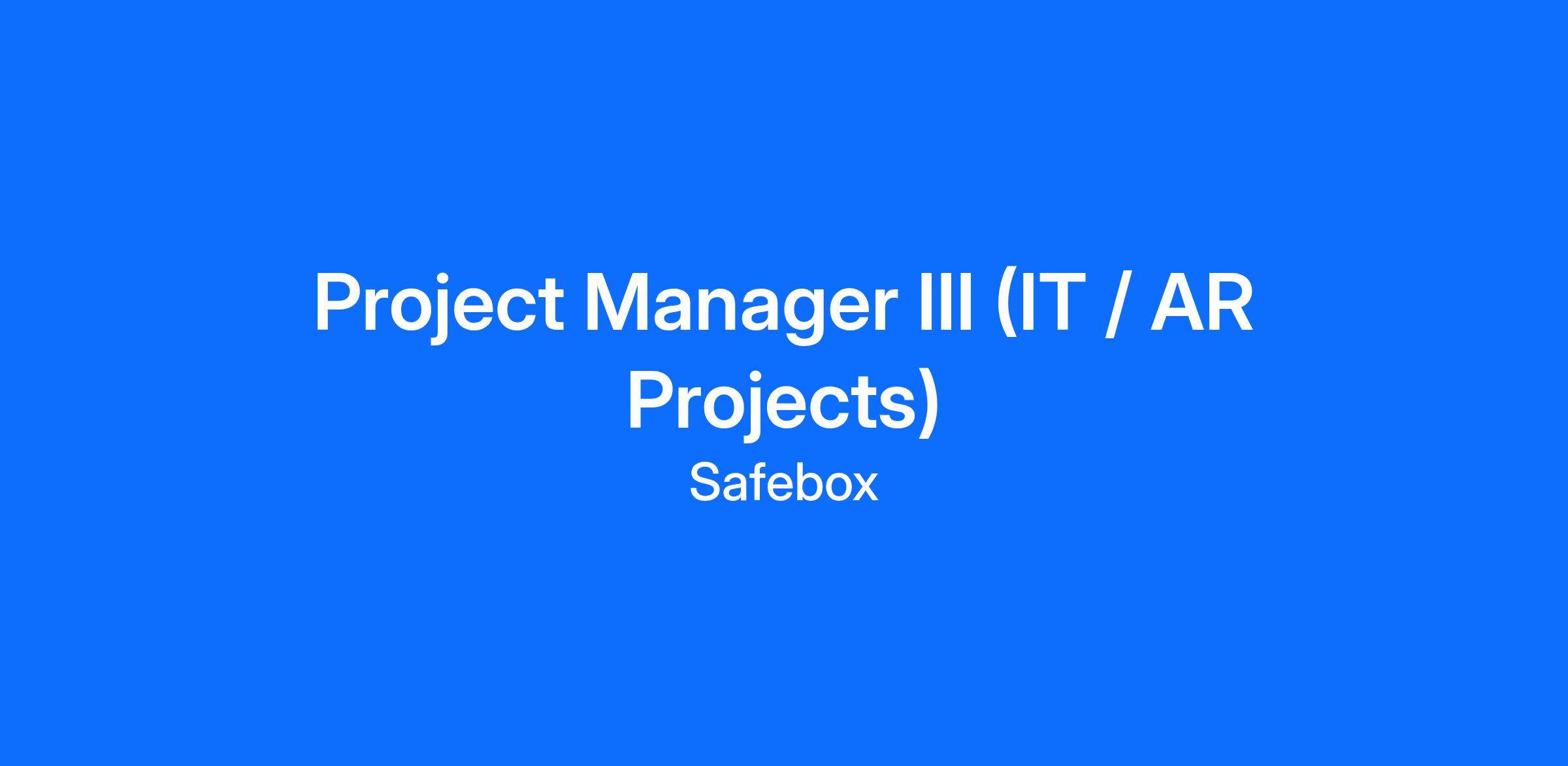Safebox LLC is seeking a Senior Project Manager (Project Manager III) to lead the delivery of Augmented Reality (AR) and video-based projects from ideation through execution. This role works closely with studio leadership, account teams, and cross-functional partners to deliver high-quality, client-facing experiences. The ideal candidate is organized, client-focused, and comfortable managing multiple complex creative and technical projects simultaneously while maintaining a high level of service and professionalism.