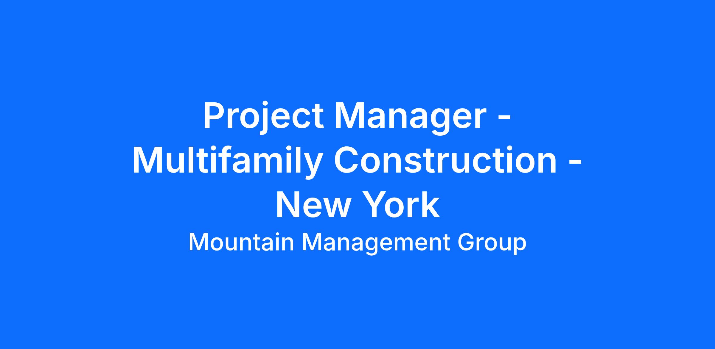 Project Manager - Multifamily Construction - New York