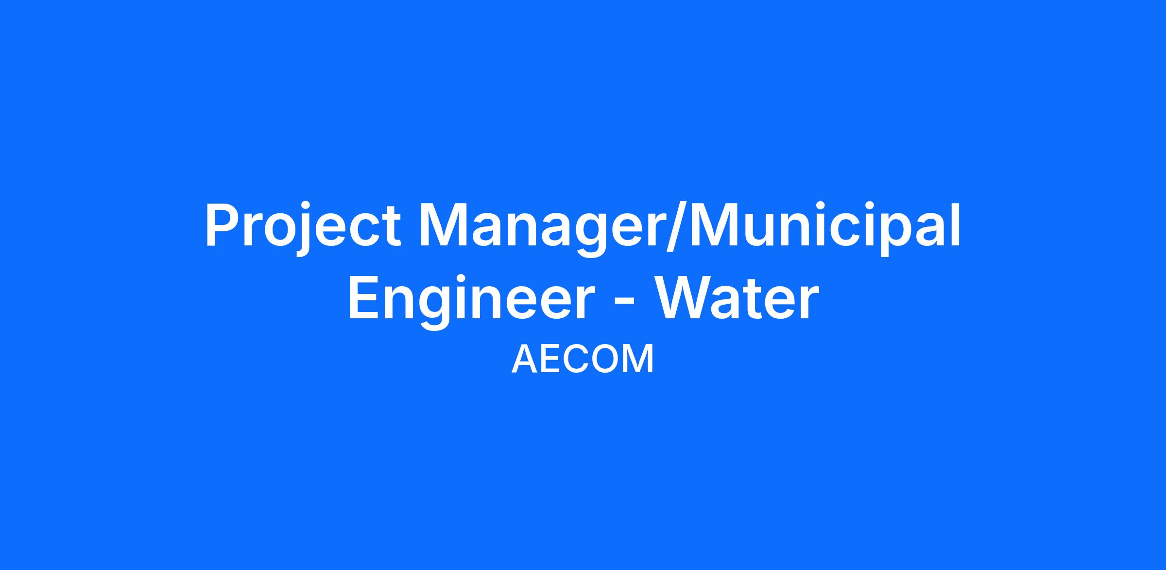 AECOM's Water group is searching for a Project Manager/Municipal Engineer with Project Management career aspirations in the Conveyance sector of the Water business line. This existing vacancy can be based out of any of our Greater Toronto offices.