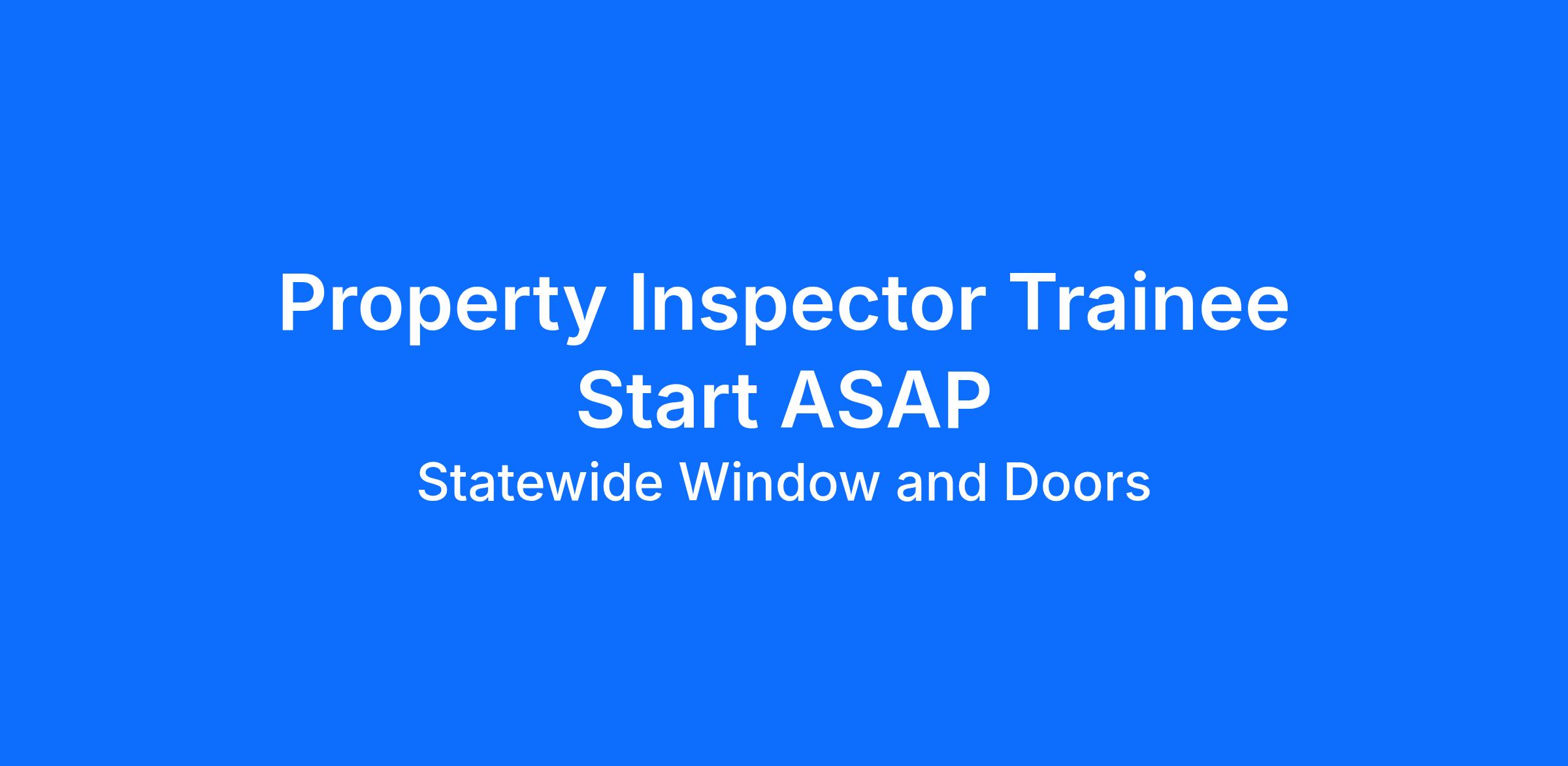 Property Inspector Trainee Start ASAP