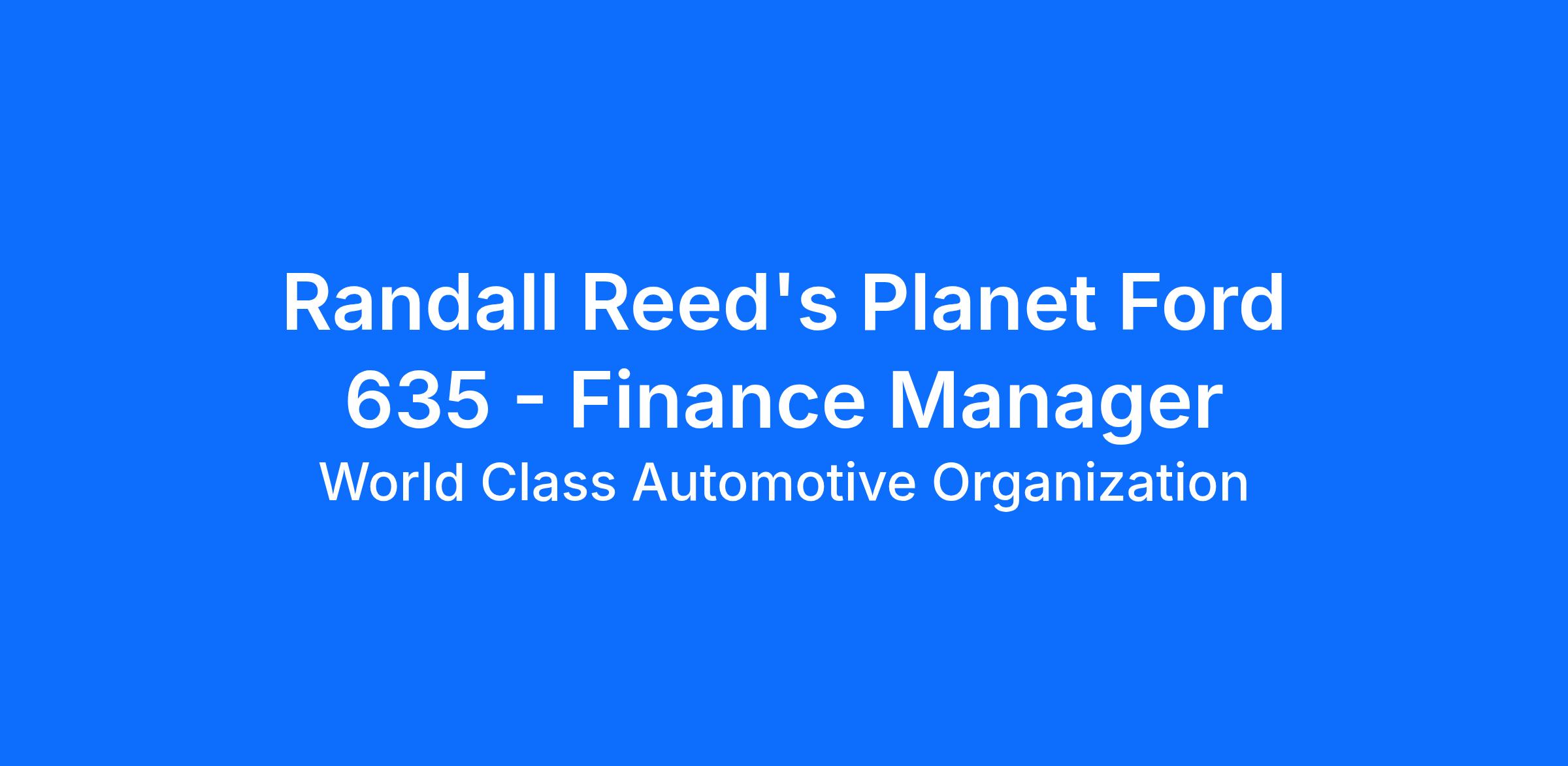 Looking for a energetic, enthusiastic and driven individual for the Finance Manager role at Randall Reed's Planet Ford 635, Garland TX.