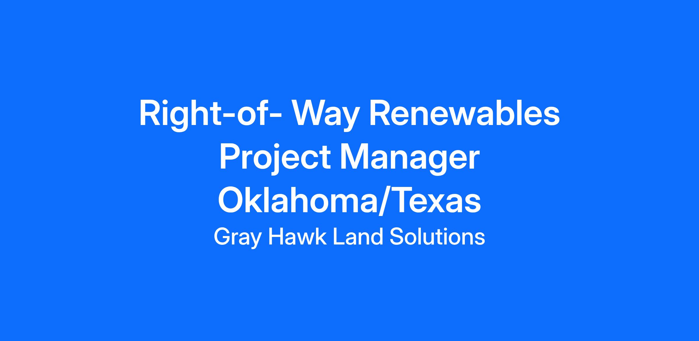 Gray Hawk Land Solutions is currently hiring for the position of Project Manager to oversee renewables projects in Texas and Oklahoma. Project duties include, but are not limited to planning, scheduling, and assigning all activity to the Field Staff Project Team to assure the successful completion of a Right-of-Way project. The PM shall have a good understanding of the legal aspects of the documents required to complete the Project, as well as property values, environmental issues and the state statutes, county and municipal ordinances, and permitting requirements of the jurisdictional agencies in the Project area. The Project Manager must have a minimum of ten (10) years’ relevant experience. Other factors such as education, other work experience and licenses or accreditations may be considered in determining the experience qualification as being met.