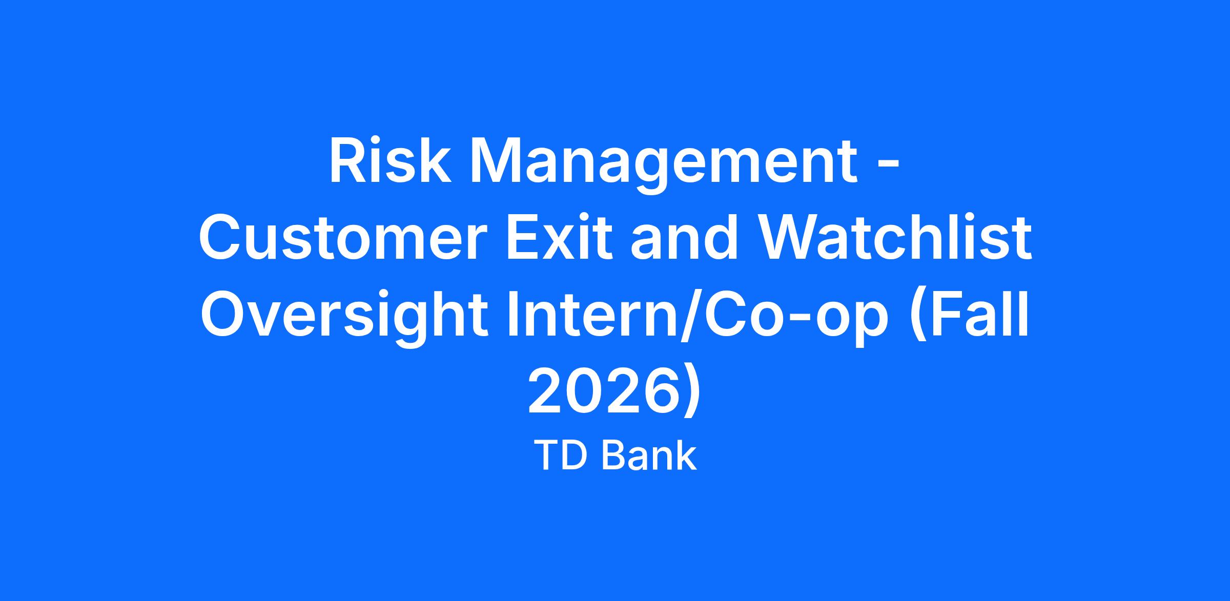 TD is committed to providing you with the best candidate experience and internship in these unique circumstances. As such, work location and start dates are subject to change.