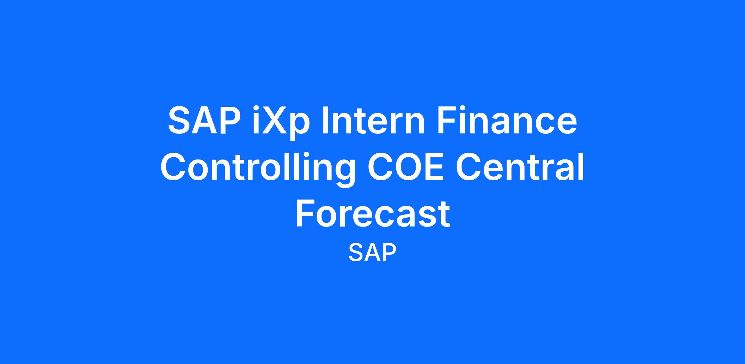 Position title: SAP iXp Intern Finance Controlling COE Central Forecast