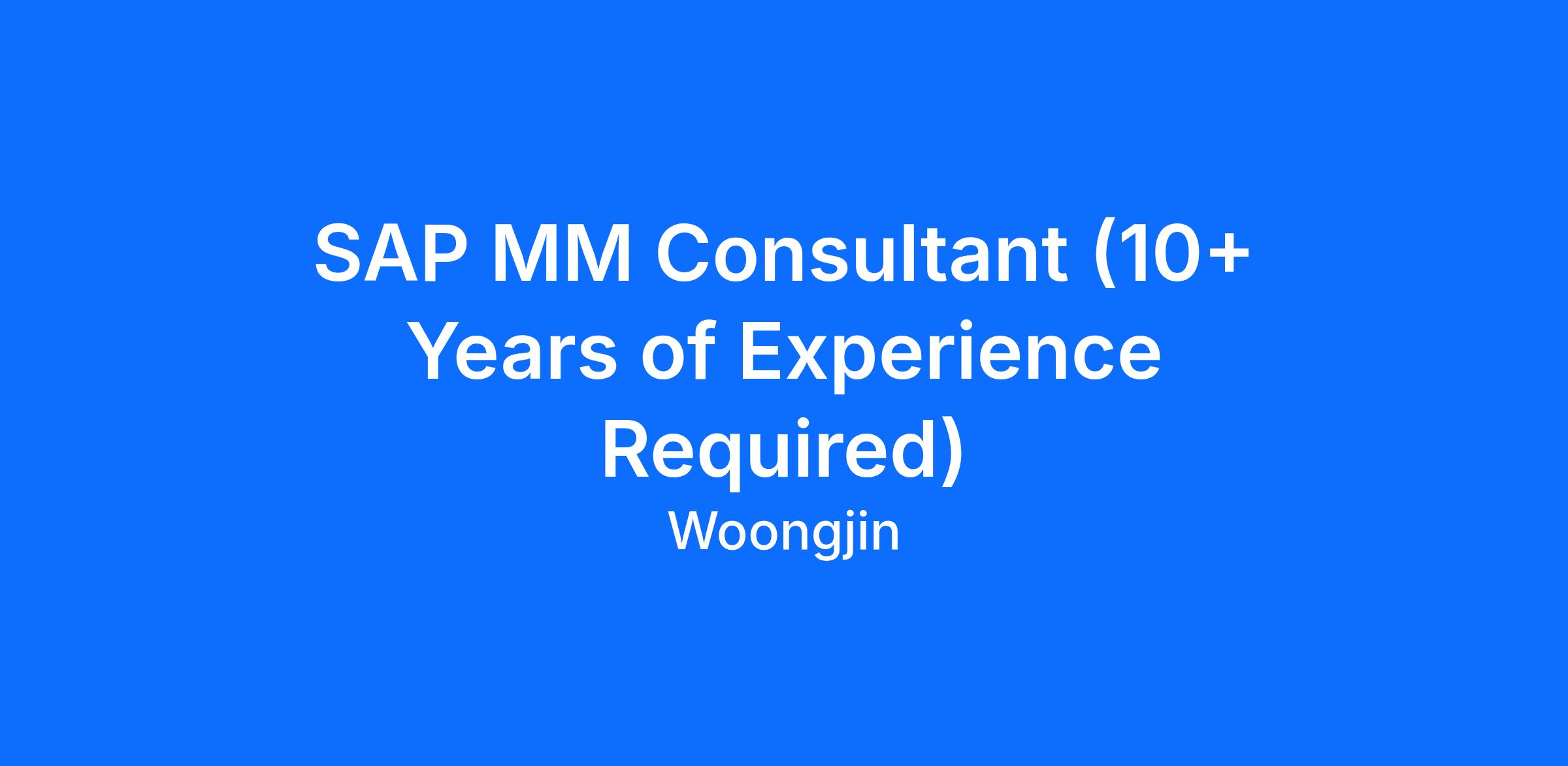 SAP MM Consultant (10+ Years of Experience Required)
