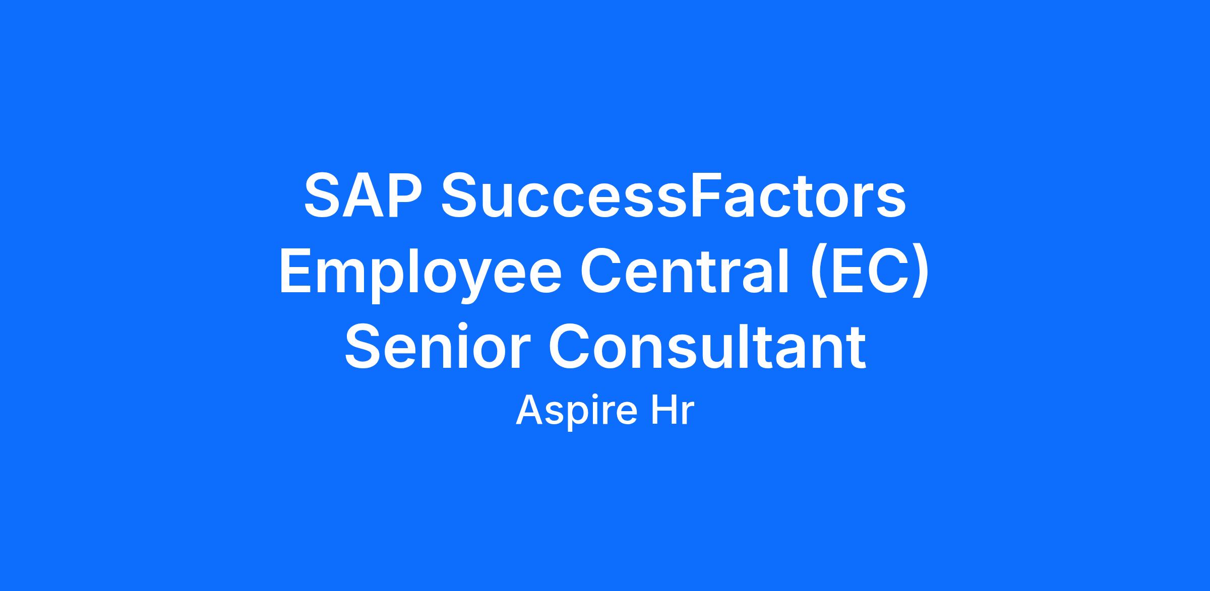 At AspireHR, our SAP SuccessFactors Employee Central Certified Consultant will work directly with our clients and their day-to-day responsibilities will vary depending on the project.