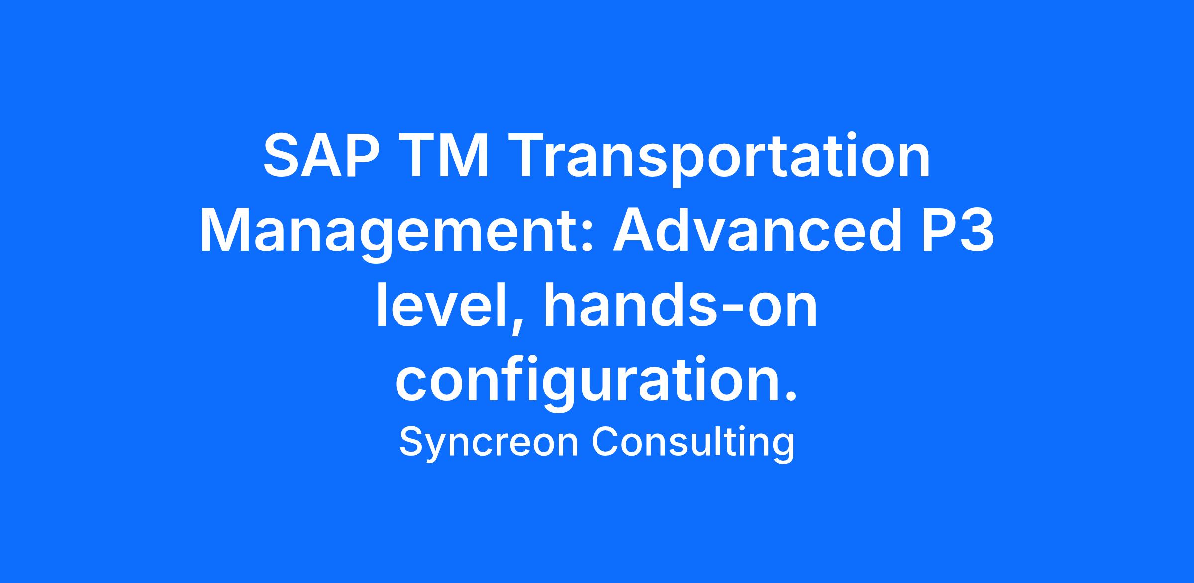 SAP TM Transportation Management: Advanced P3 level, hands-on configuration.