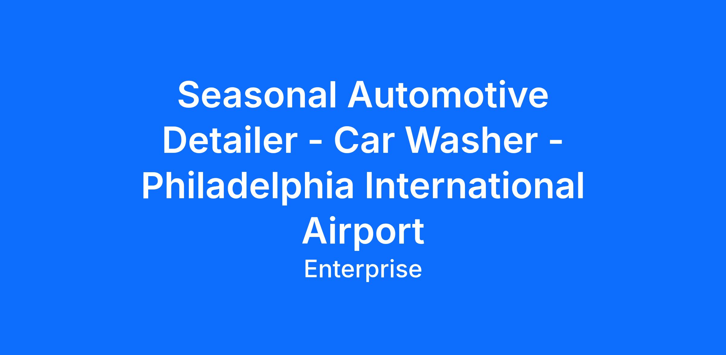 Enterprise Mobility is seeking responsible, dedicated people to join our team as Seasonal Automotive Detailers. This position is located at the Philadelphia International Airport - 1 Arrivals Road Philadelphia, PA 19153. This position pays $17 / hour with the ability to earn an average of $300 in performance bonuses per month.