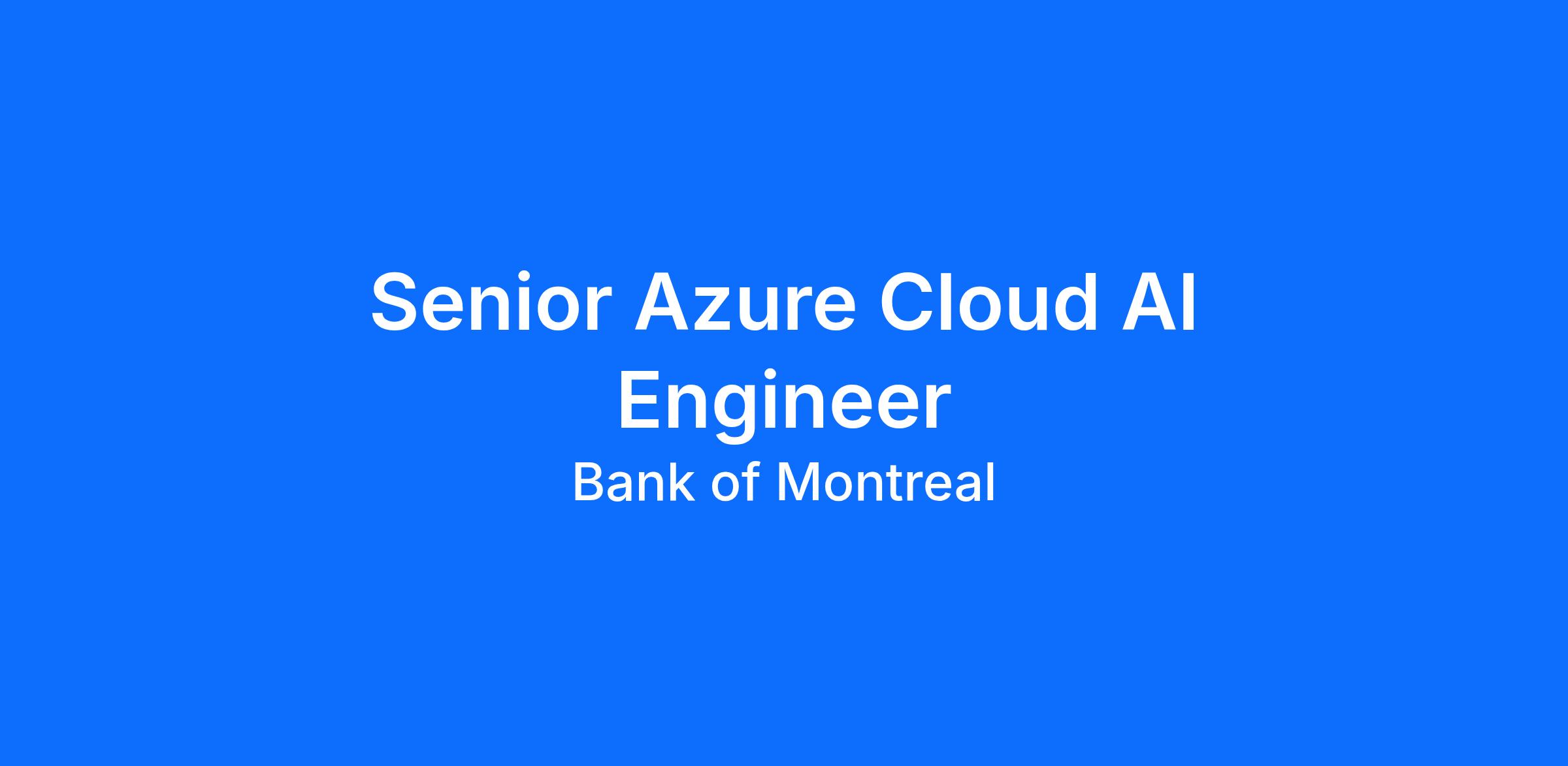 As a Senior Azure Cloud AI Engineer, you will play a hands‑on senior engineering role within BMO’s Azure cloud and Applied AI ecosystem. You will be responsible for designing, building, and operating secure, scalable Azure infrastructure and platform services that enable data, AI, and Generative AI workloads at scale.