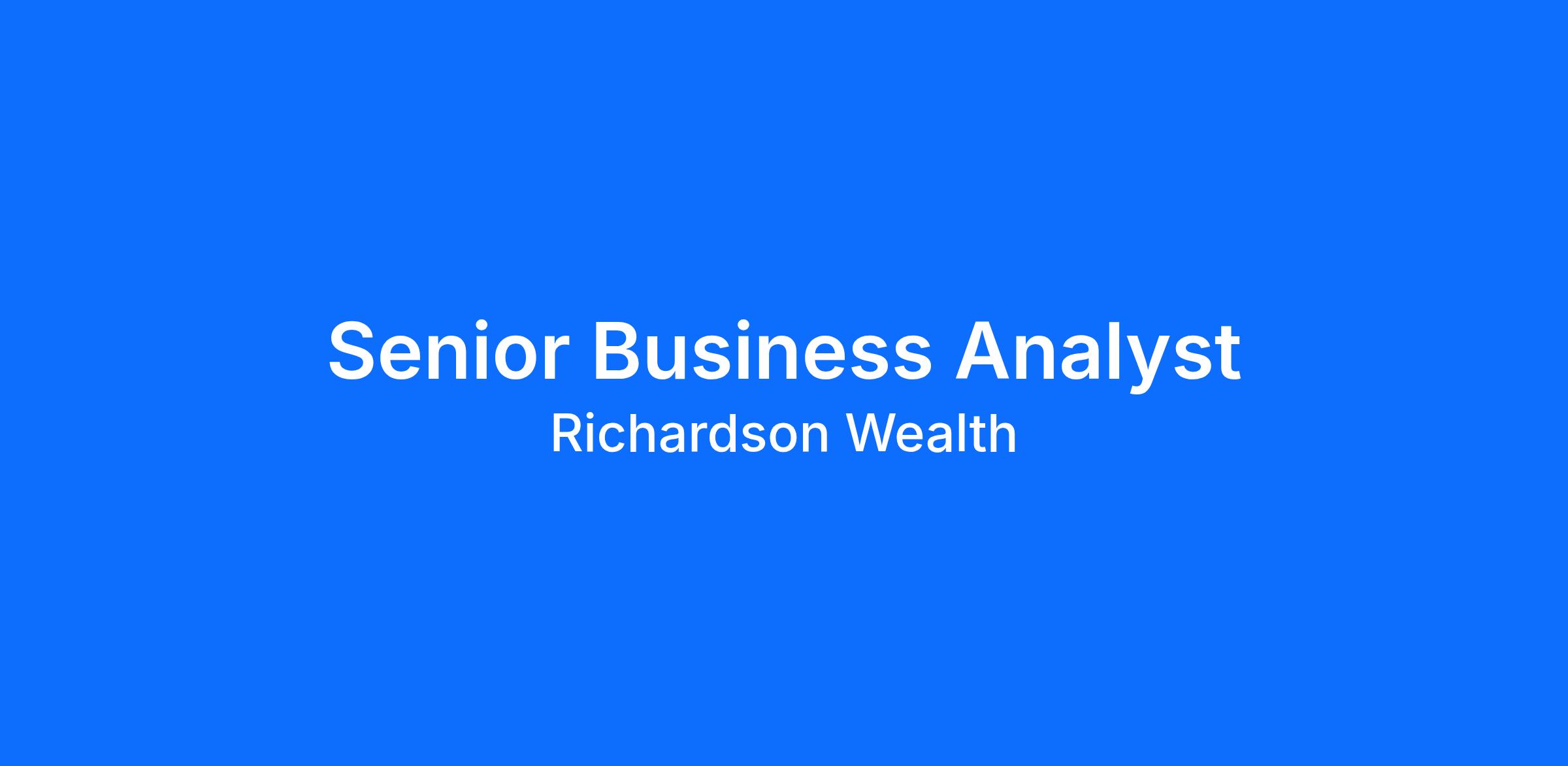 Position Overview    This position is a member of the Business Solutions team, reporting to the Senior Manager. This is an existing vacancy    Duties and Responsibilities    •    Acts as the primary contact/relationship manager for a portfolio of business partners in the development and implementation of strategic directions, new business opportunities, product initiatives, and service developments•    Consults with the business to understand its goals and objectives for a specific initiative or project and advises the business on the functionality, applicability, and usability of alternative solution•    Responsible for owning the solution to satisfy the business needs•    Elicits, analysis, documents and manages business and solution requirements•    Acts as a primary requirements management contact on projects•    Recommends process improvements•    Builds relationships and works collaboratively with stakeholders to identify solutions and resolve variance from product/application specifications•    Reviews testing documentation and participates in triaging defects to ensure business needs and solution requirements are met•    Participates in post implementation reviews and processes (e.g. lessons learned, post-install application verifications, warranty support reviews etc.)•    Provides subject matter expertise on specific application usage or area of knowledge (e.g., setting up customer data on various products)•    Supports other team members in achieving project/ business objectives and providing client services•    Fosters a positive work environment that promotes customer service, quality, innovation and teamwork Qualifications    •    10+ years progressive business analysis/business consulting experience, supporting and leading large/enterprise-wide projects•    Solid problem solving and analytical skills. Ability to multi-task in a multi-faceted role within a high paced environment•    Strong relationship management, communication, negotiation, and interpersonal skills•    Solid understanding of requirements elicitation, analysis, documentation and management•    Experience in large-scale implementations of third-party solutions•    Hands-on experience in business process modelling using UML, BPMN or similar techniques •    Hands-on experience in identifying, documenting, and communicating data requirements•    Knowledge of the project management lifecycle (PMLC) and experience with various applications of the software development lifecycle (Waterfall, Iterative, Agile)•    Expertise in Wealth Management domain and Wealth Management Front Office and Back Office Full Service is a definite advantage•    Preferably has hands on experience with Salesforce or has worked on Salesforce advisor journey, implementation and configuration.•    Working knowledge of SQL is a strong asset•    Familiarity with business assessment tools (e.g. feasibility studies, business cases, cost/benefit analysis, project sizing and costing) is an asset Education    •    University degree/college diploma•    CBAP (Certified Business Analysis Professional)-IIBA is an asset  The expected annualized base salary range for this role is $94,500-$115,500The actual salary offered will take into consideration a wide array of factors including, but not limited to, the individual’s skill, experience, education and training, and the consideration of internal equity.Richardson offers a competitive total rewards package in addition to the base pay, which includes a performance-based incentive plan, comprehensive health & dental benefits, a group RRSP matching plan and paid time off. #LI-Hybrid