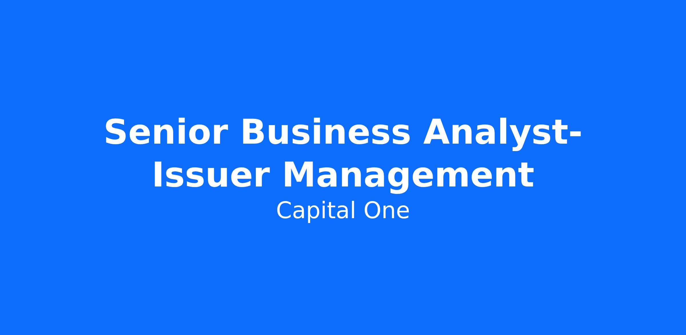 Summary: As a Senior Business Analyst at Capital One, you will apply your strategic and analytical skills to major company challenges. You will team with world-class professionals to develop and test strategies that ultimately impact the bottom line. And you will do it all in a collaborative environment that values your insight, encourages you to take on new responsibility, promotes continuous learning, and rewards innovation.