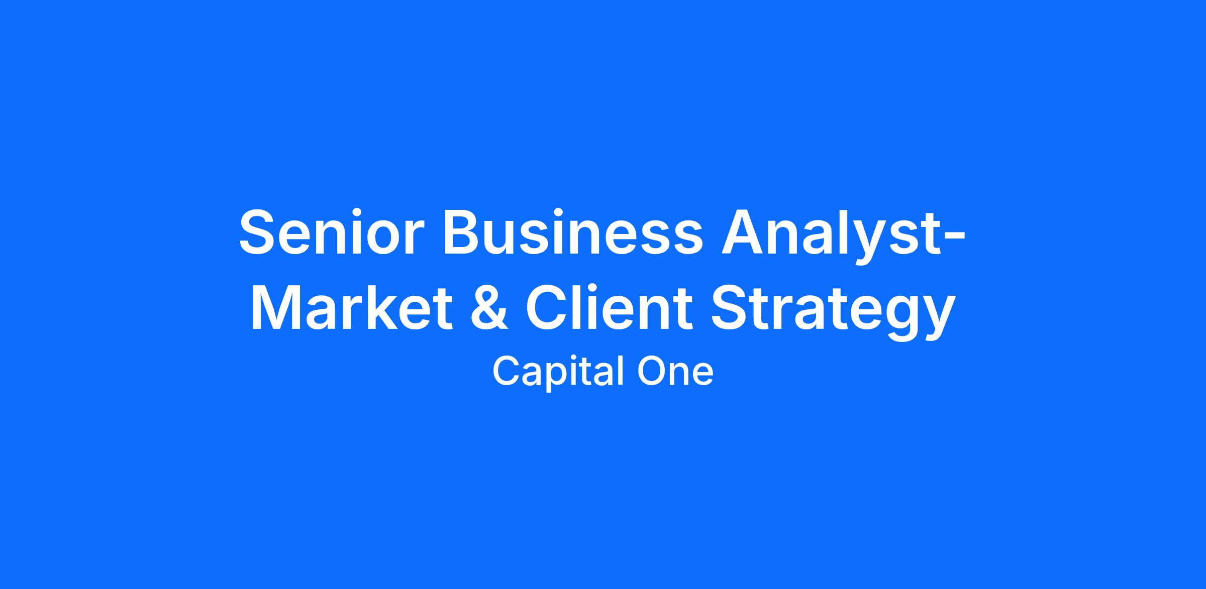 Summary: As a Senior Business Analyst at Capital One, you will apply your strategic and analytical skills to major company challenges. You will team with world-class professionals to develop and test strategies that ultimately impact the bottom line. And you will do it all in a collaborative environment that values your insight, encourages you to take on new responsibility, promotes continuous learning, and rewards innovation.