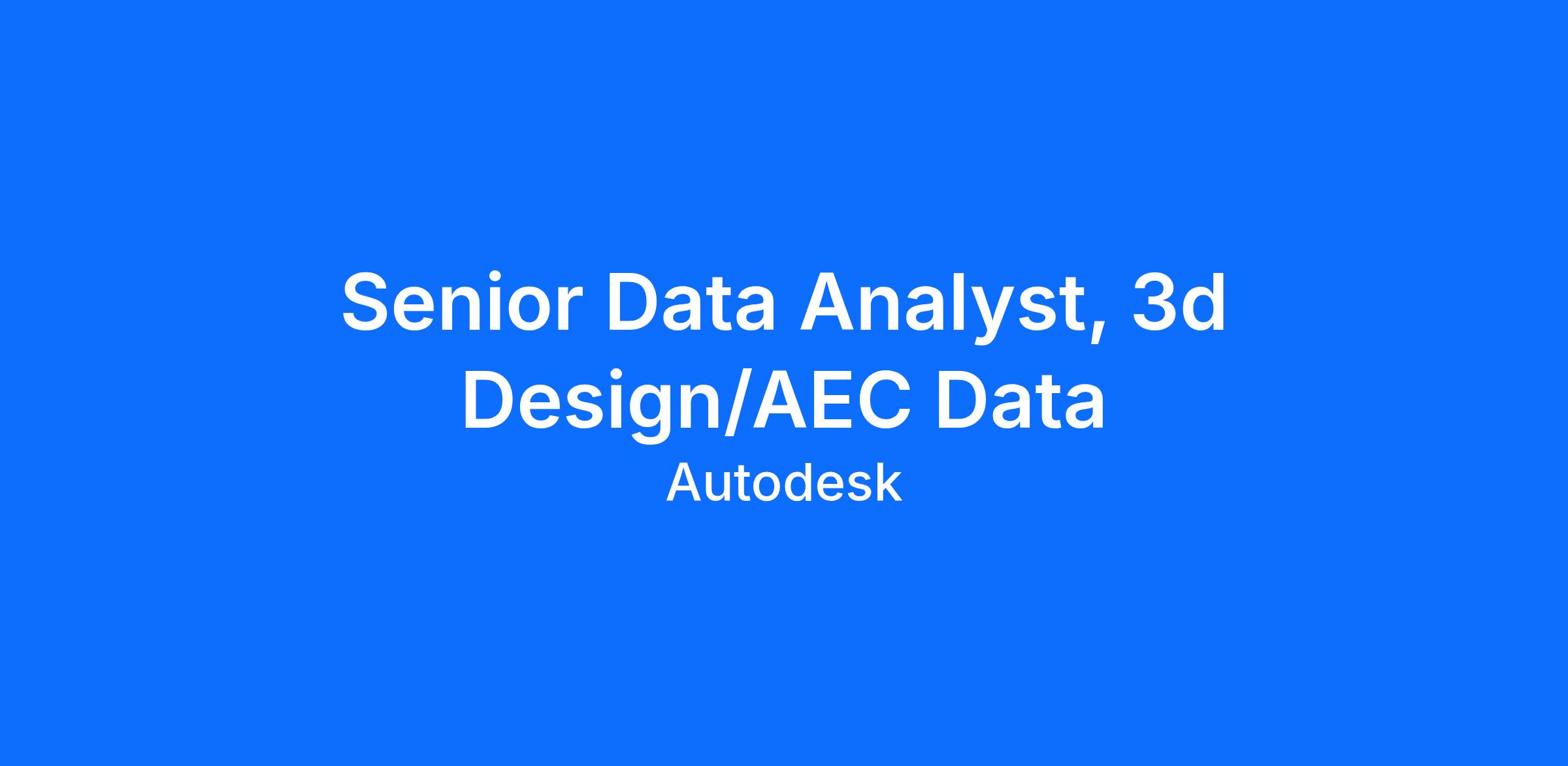 Autodesk seeks a strong senior data analyst with 3d /AEC design data within the Data Acquisition team, designated with understanding, quantifying and visualizing various design data elements, enrichments and abstracts. These datasets form the basis for data selection and understanding for various AI/ML projects at Autodesk.