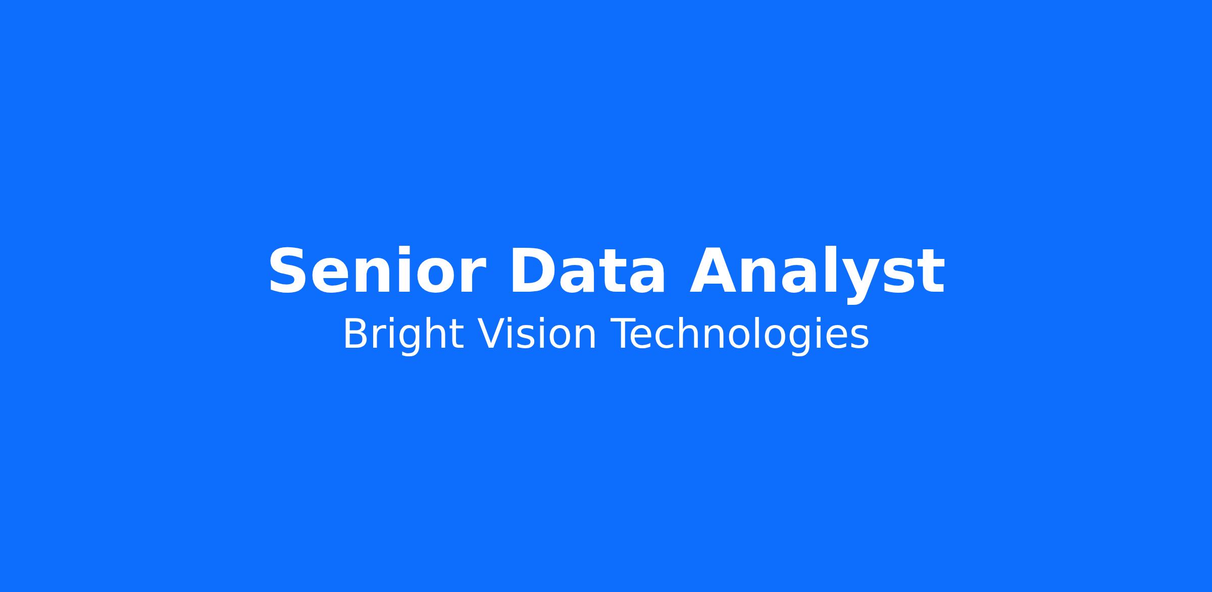 Bright Vision Technologies is a forward-thinking software development company dedicated to building innovative solutions that help businesses automate and optimize their operations. We leverage cutting-edge technologies to create scalable, secure, and high-performance applications.As we continue to grow, we’re looking for a skilled Senior Data Analyst to join our dynamic team and contribute to our mission of transforming business processes through technology. This is a fantastic opportunity to join an established and well-respected organization offering tremendous career growth potential.We are looking for OPT / CPT / H4 EAD / TN / E3 or any other Non-Immigrant visa candidates who are looking for H-1B sponsorship for the 2027 quota.Company: Bright Vision Technologies (www.bvteck.com)Job Title: Senior Data Analyst