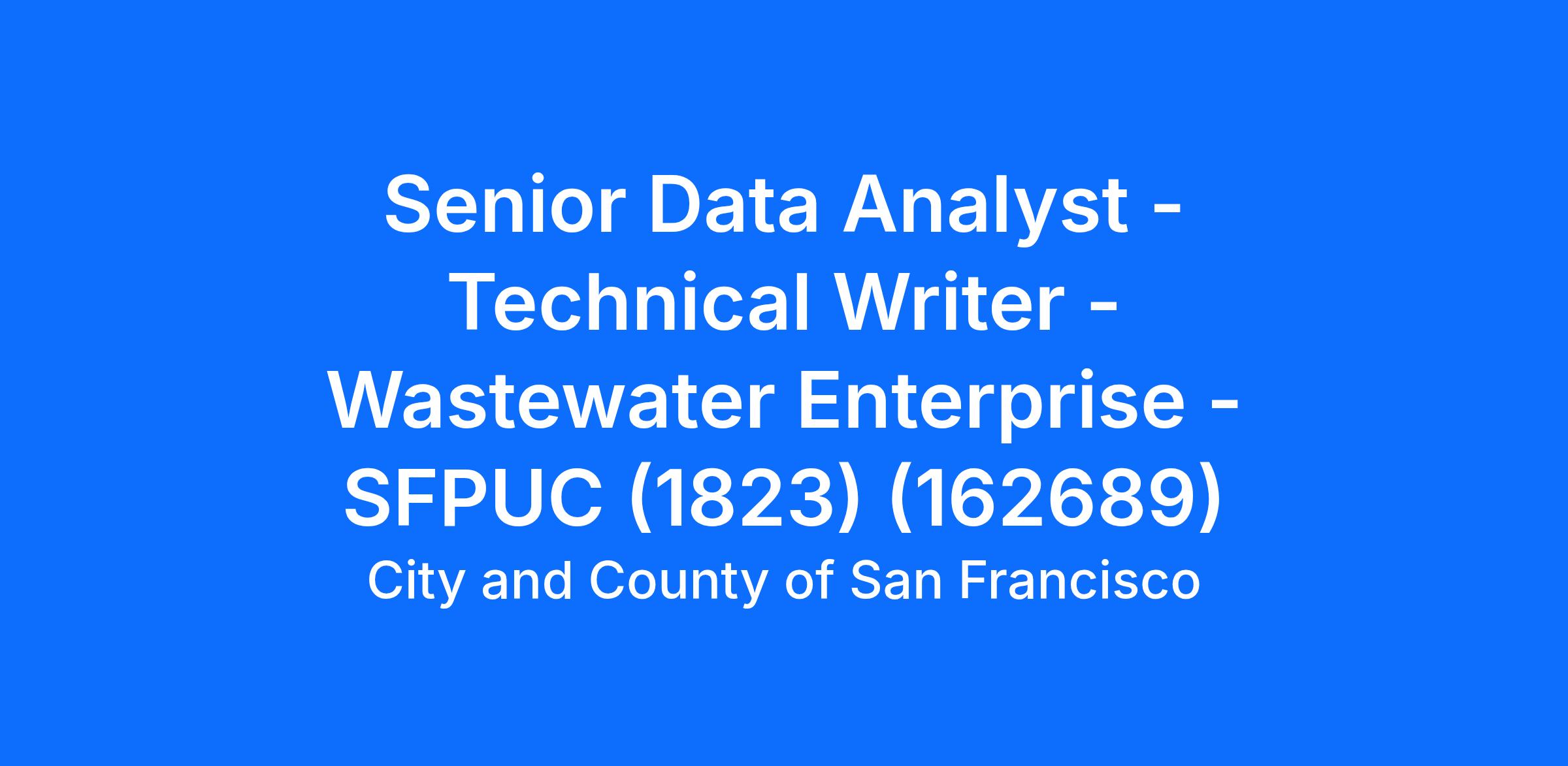 Senior Data Analyst - Technical Writer - Wastewater Enterprise - SFPUC (1823) (162689)