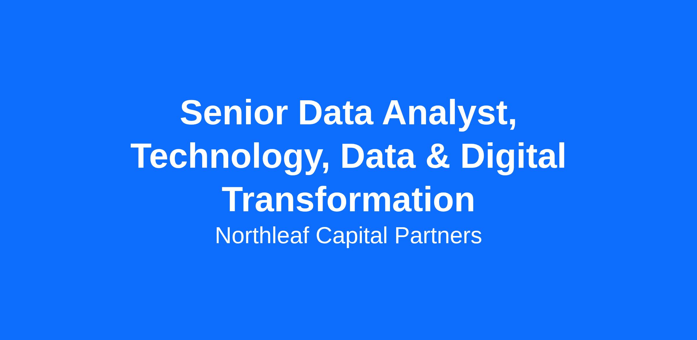 Position: Senior Data Analyst, Technology, Data & Digital Transformation