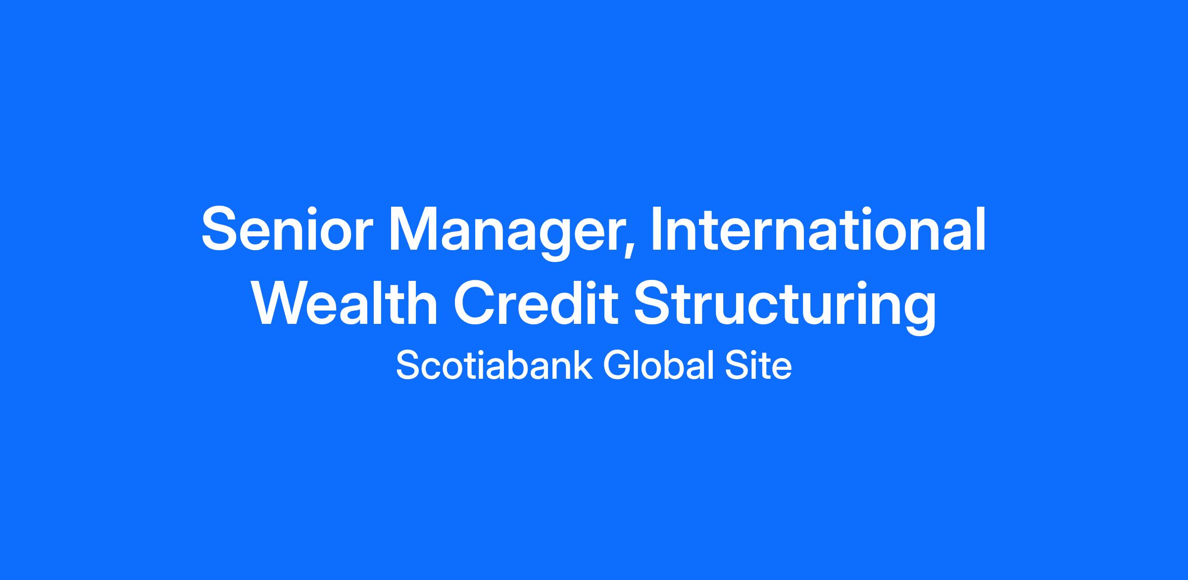 The Senior Manager, International Wealth Credit Structuring is focused on customized credit underwriting. The role is responsible for contributing to the quality and the profitable growth of the Private Banking customized credit portfolio by completing credit structuring-related activities for High Net Worth and Ultra High Net Worth clients including risk analysis, deal structuring, underwriting, pricing, negotiation and credit presentations for highly complex deals. The incumbent interfaces directly with clients at times, in partnership with the Credit Advisors and Wealth Managers in the booking points where we operate (Toronto, Mexico, Bahamas, Cayman, Peru, Chile, Dominican Republic) and liaises with Global Risk Management through the credit decision- making process. The primary focus of the position is the completion of new credit requests and compliance with the bank’s policies.