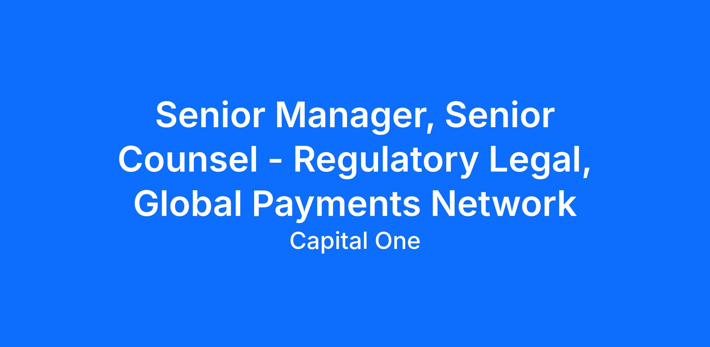 We’re seeking a forward thinking Senior Manager of Regulatory Legal to support the ambitious growth of our global payments network.