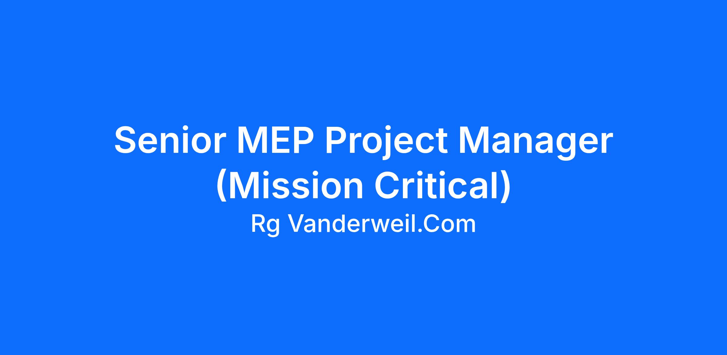 Senior MEP Project Manager (Mission Critical)
