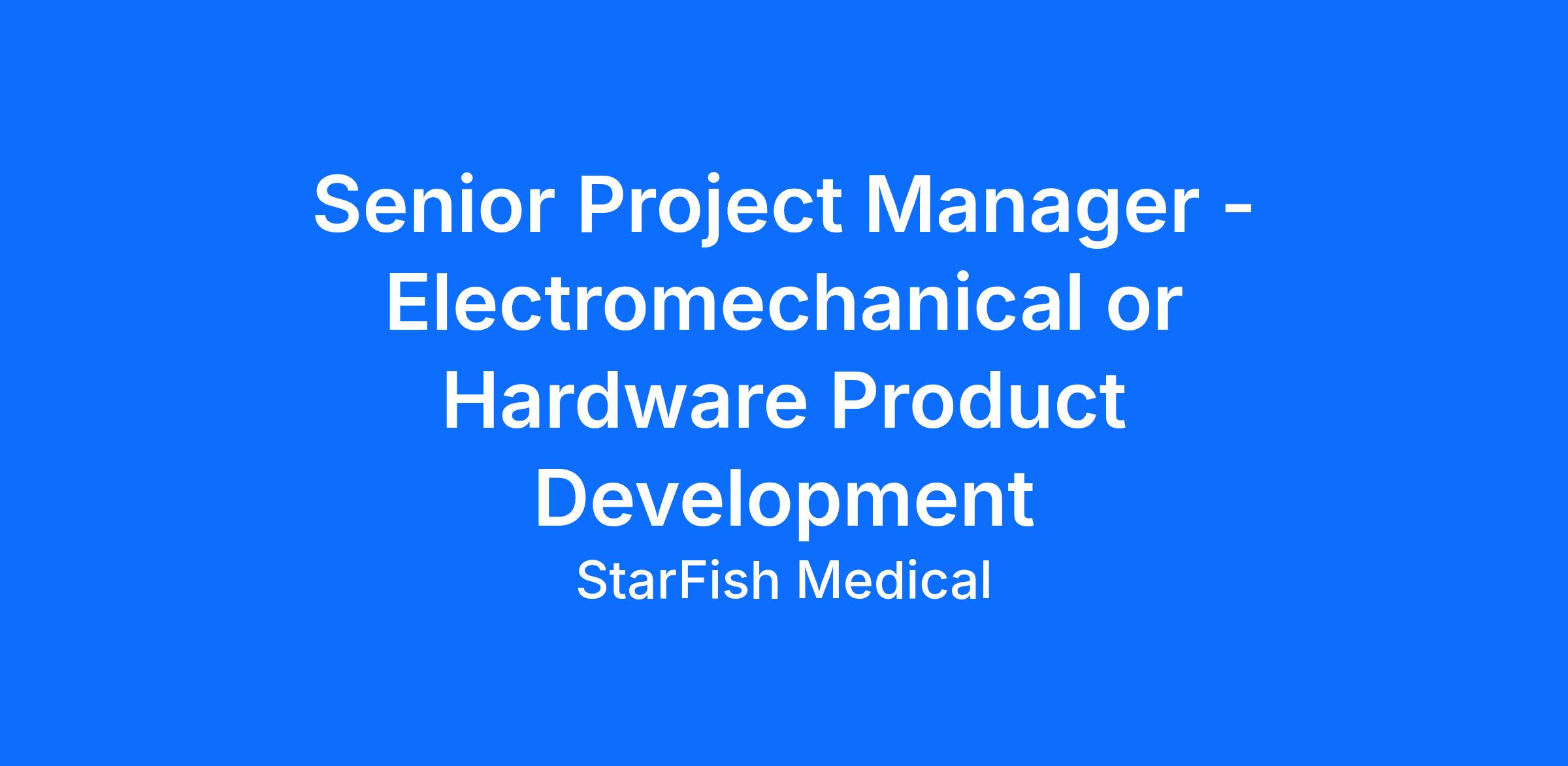 StarFish Medical is seeking an experienced Senior Project Manager to lead complex electromechanical product development projects from concept to commercialization.