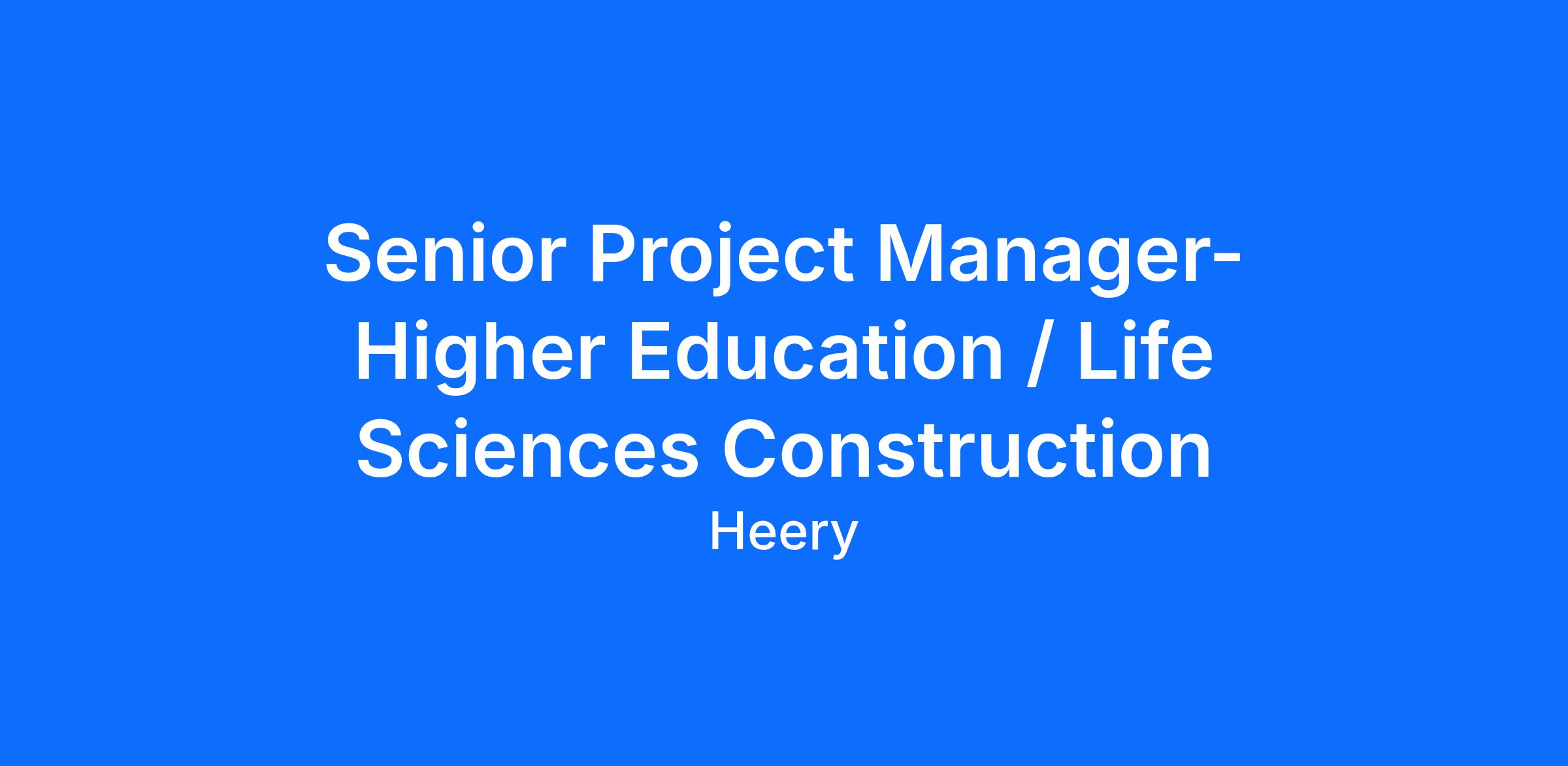 Senior Project Manager- Higher Education / Life Sciences Construction