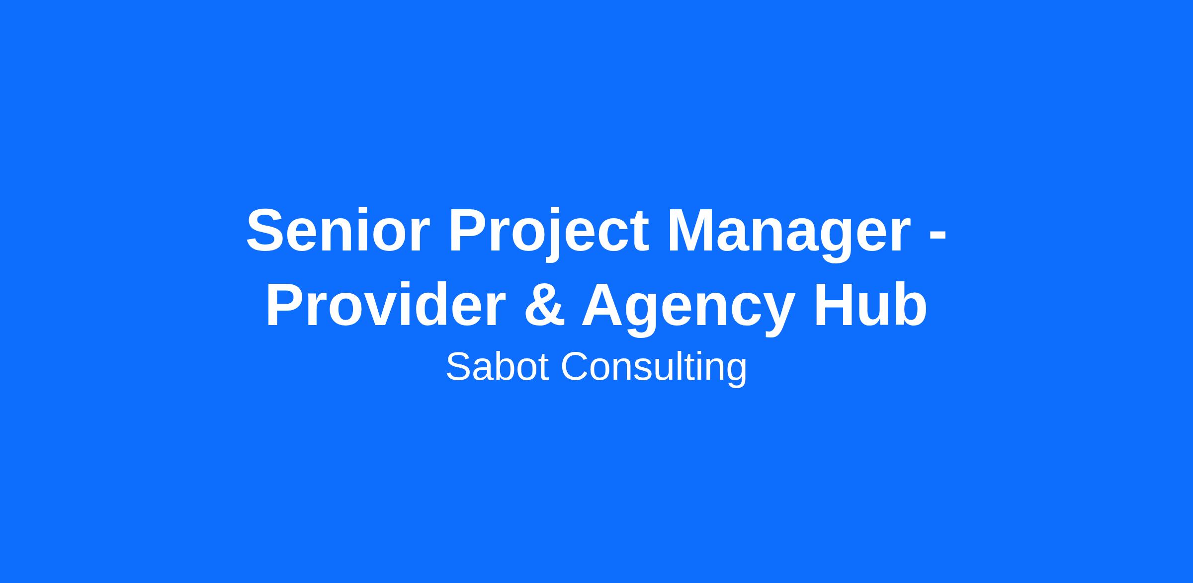 Senior Project Manager Location: Remote Salary: $110-140k Sabot Consulting is seeking a Senior Project Manager to deliver high‑visibility, high‑complexity projects within the Provider and Agency Hub expansion for our End Client. This role ensures projects are delivered on time, within budget, and to quality standards while managing risk, stakeholder expectations, and multi‑team coordination. The Senior Project Manager serves as a key leader in driving project execution, facilitating governance, and supporting organizational alignment across state and vendor teams.