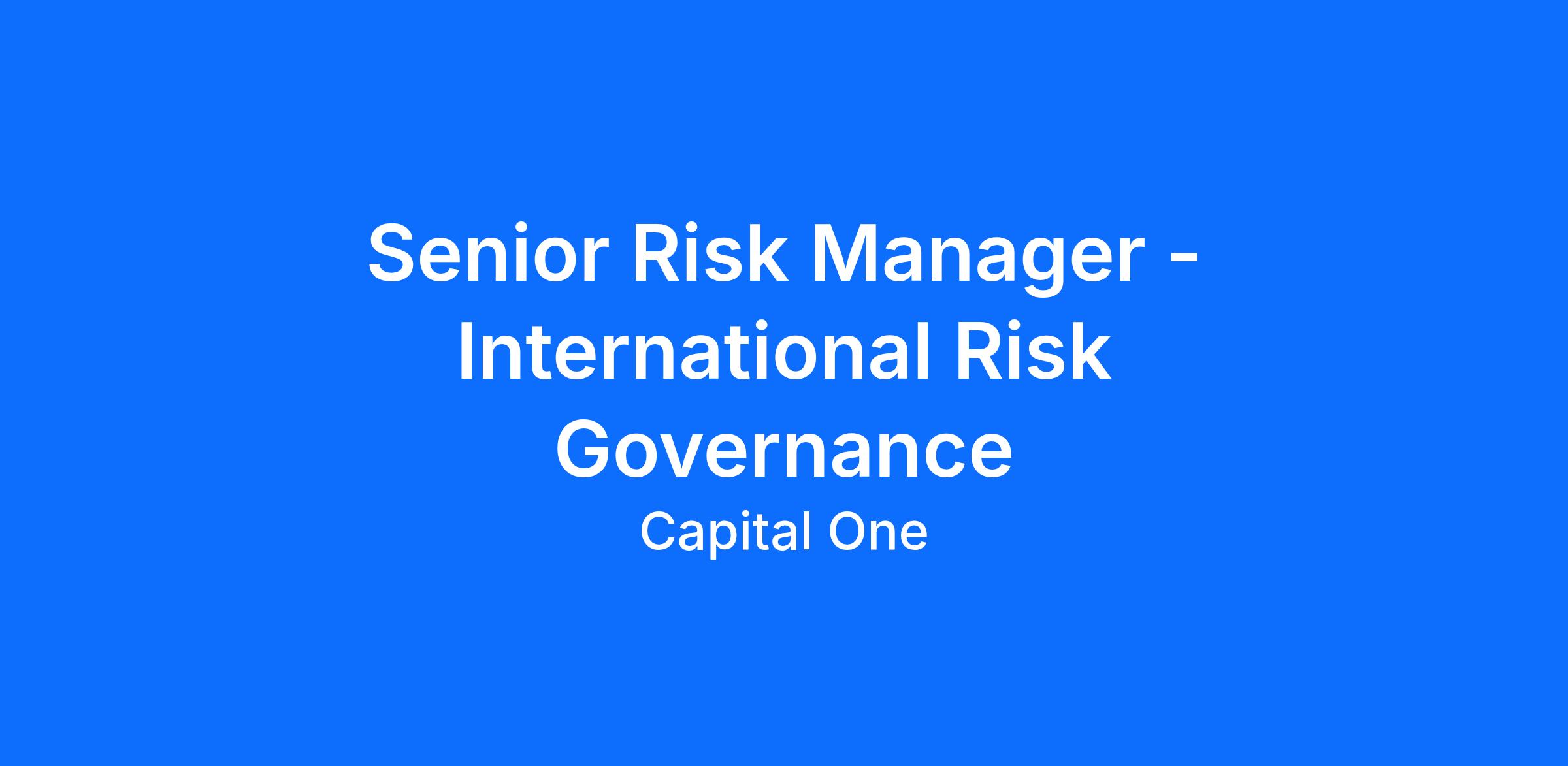 Capital One is seeking an energetic, self-motivated Senior Risk Manager for the International Risk Program within the Operational Risk Management second line of defense. The International Risk team is a dedicated group of risk professionals responsible for overseeing and effectively challenging Capital One’s international business activities, including our non-US products, services, offshore associates and contractors, and facilities to manage our international risk exposure