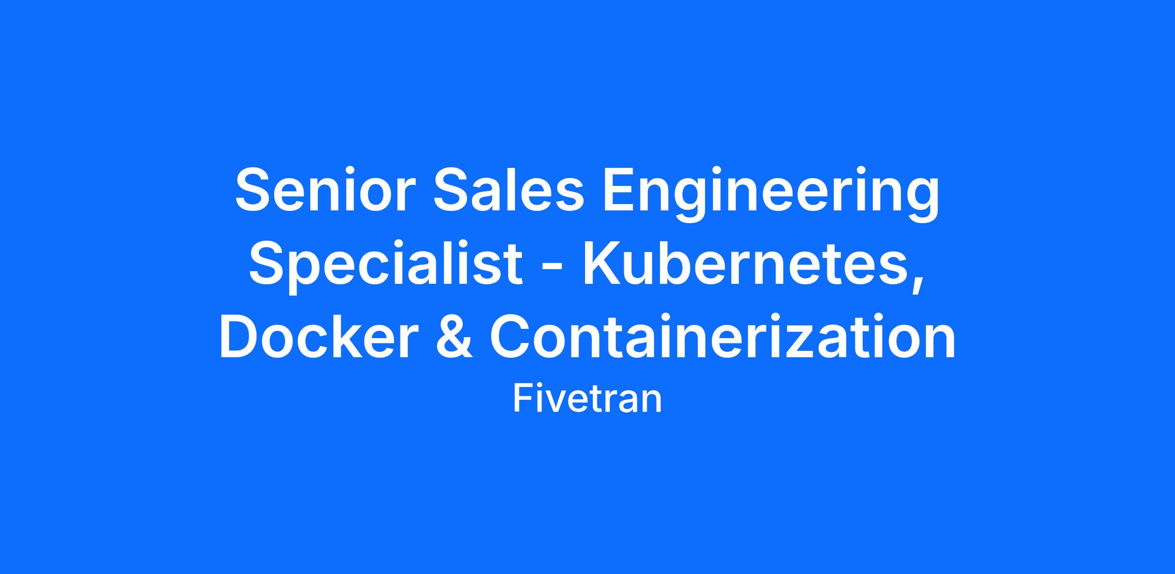 We’re looking for a talented presales individual with deep expertise in containerization to join our global sales engineering specialist team. As a Sales Engineering Specialist focused on our Hybrid Deployment architecture, you will work closely with our sales and field sales engineering teams to accelerate our customers’ and prospects’ understanding of the value of our Hybrid Deployment model, an architecture steeped in containerization, Kubernetes, Docker and Podman. In addition, you will be tasked with working cross-functionally with our SRE and Product teams to ensure comprehensive support for Hybrid Deployment mechanisms and services.