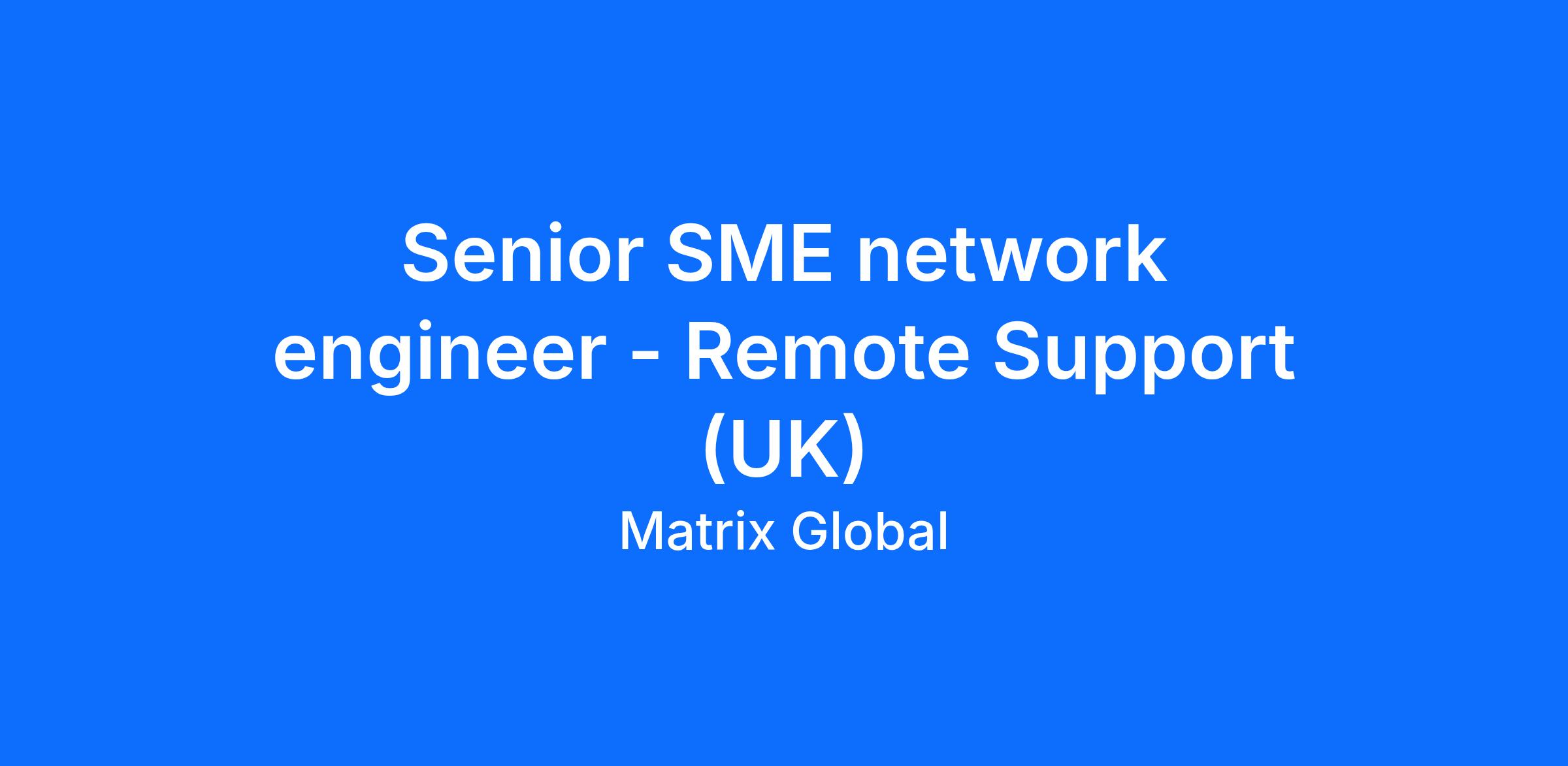 We are seeking an experienced Cisco Network Subject Matter Expert (SME) – Level 2/Level 3 to provide remote support for a large chain of retail stores across the United Kingdom. The ideal candidate will be responsible for advanced network troubleshooting, configuration, maintenance, and incident resolution across a multi‑site retail environment. This position requires strong expertise in Cisco networking technologies and the ability to work efficiently within a high‑availability, customer‑facing operational setting.