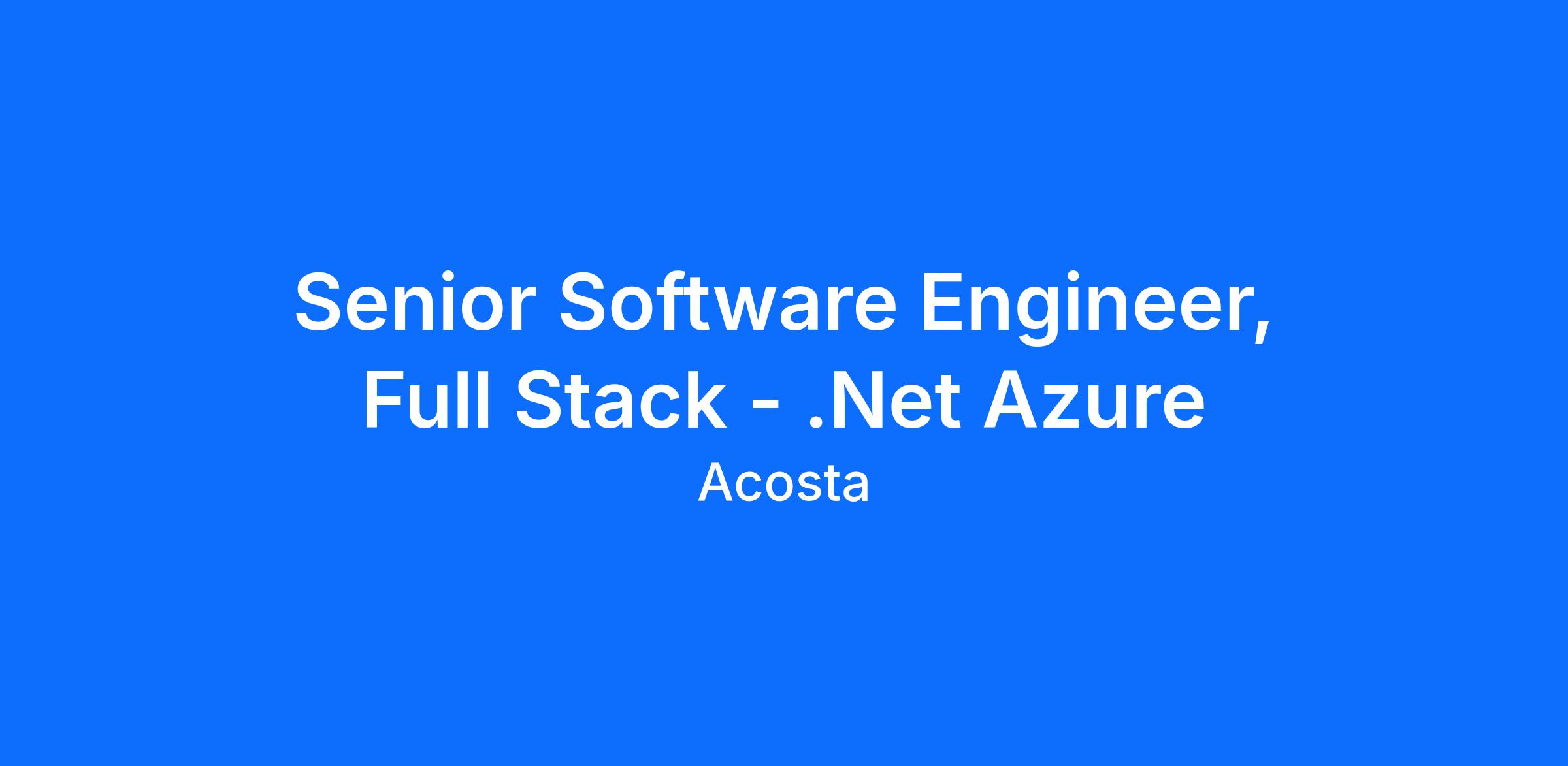 Senior Software Engineer, Full Stack - .Net Azure
